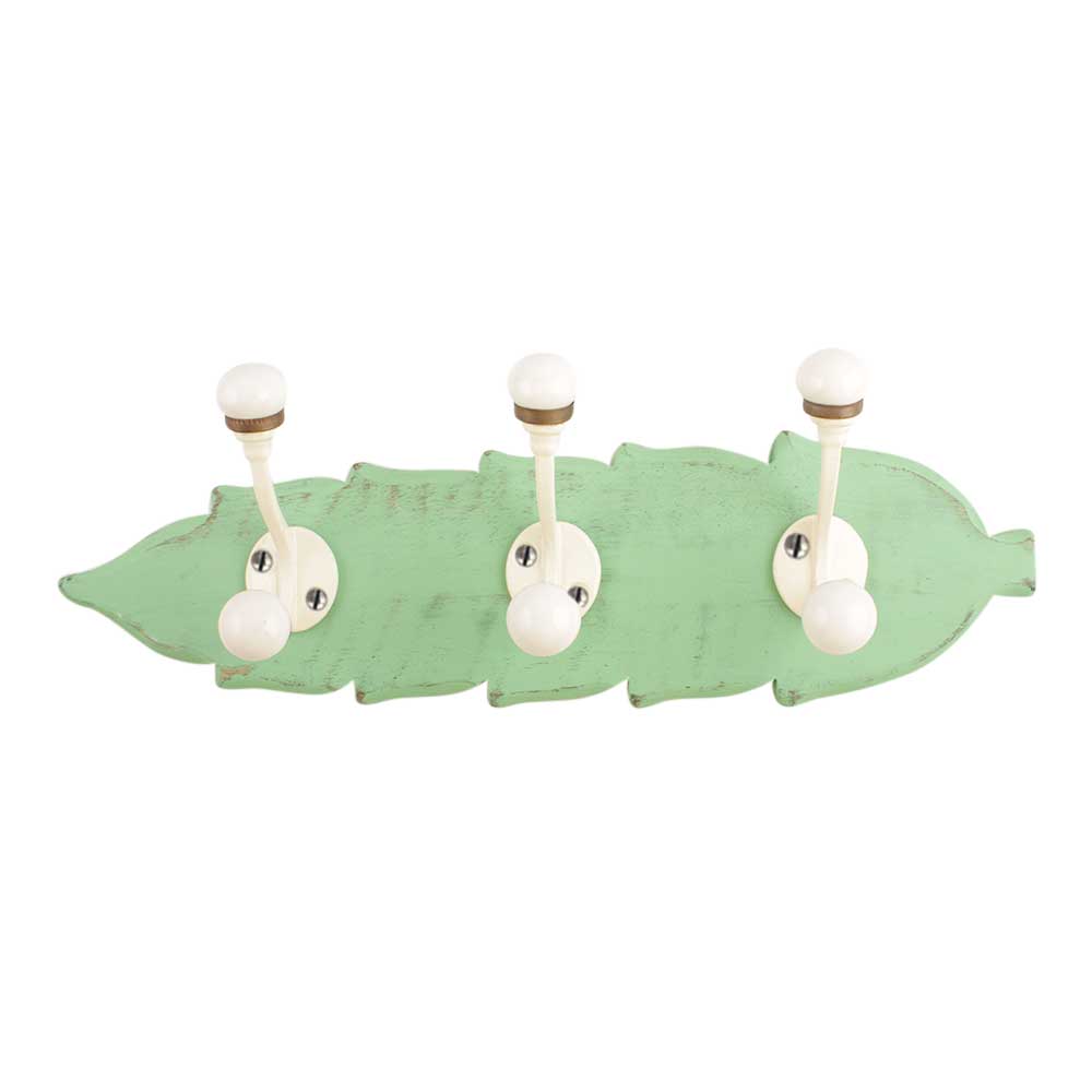 Green Cream Double Loop Ceramic Iron Wooden Hooks