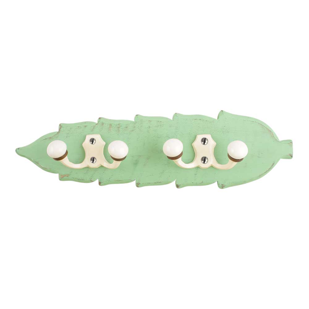 Green Cream Double Loop Ceramic Iron Wooden Hooks