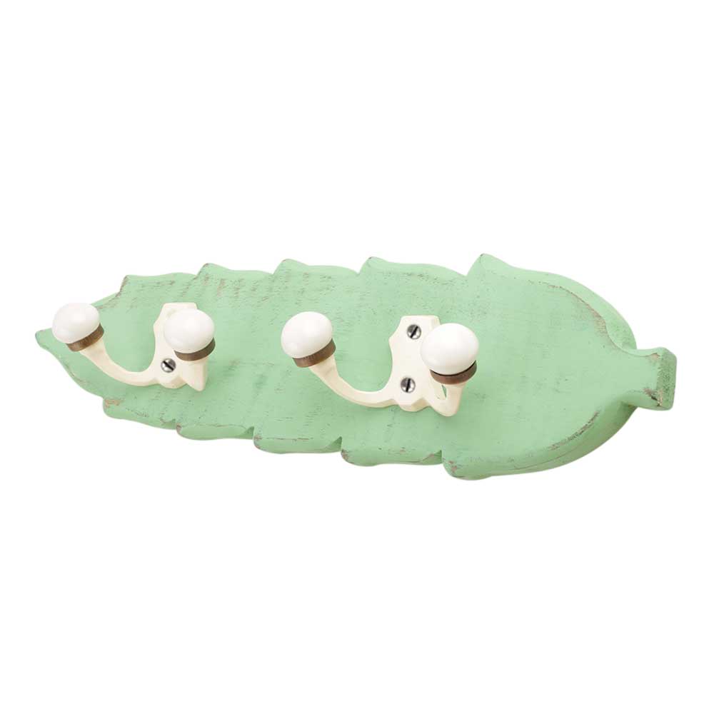 Green Cream Double Loop Ceramic Iron Wooden Hooks. A Perfect Complement to the Soft Tone of the Wood are these White Traditional Hat & Coat Hook Made of Genuine Porcelain and Brass. It can be use to Hang Jewellery, Leashes, Towels, Scarves, Light Weight Sweaters, Caps Etc.