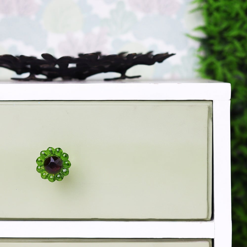 Whether in bedrooms, kitchens, bathrooms, or living rooms, the Green Daisy Glass Knob is versatile enough to complement any area. Its delightful design and vibrant color add a fresh touch to any piece of furniture, making it a fantastic choice for various décor styles.