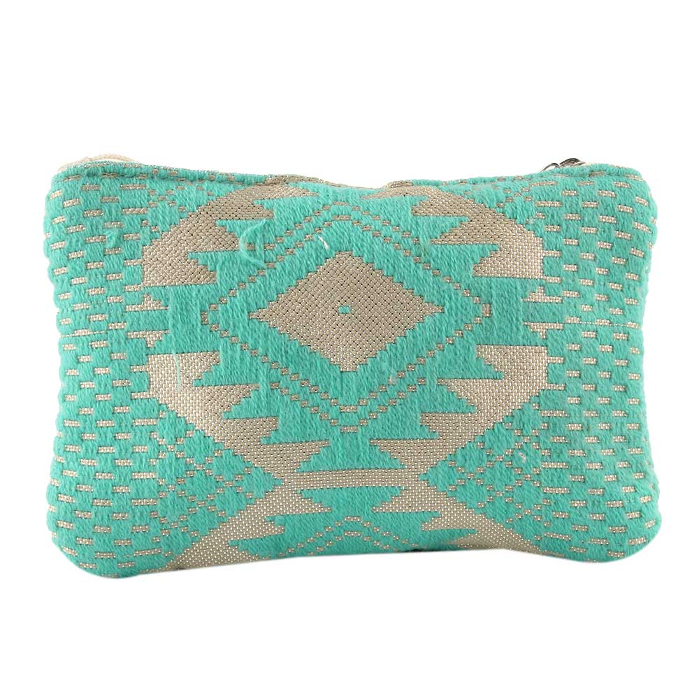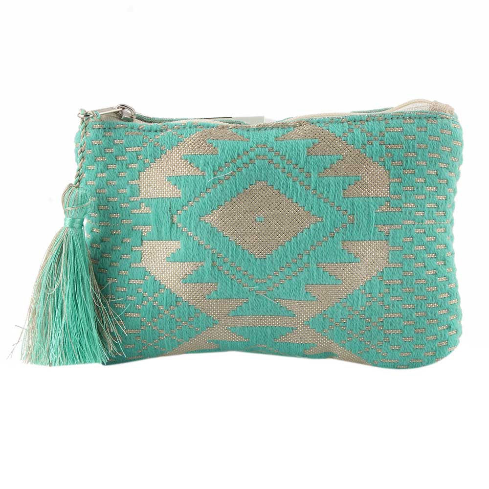 Green Embroidered ZipTop Lurex Zip Top Clutch Bag