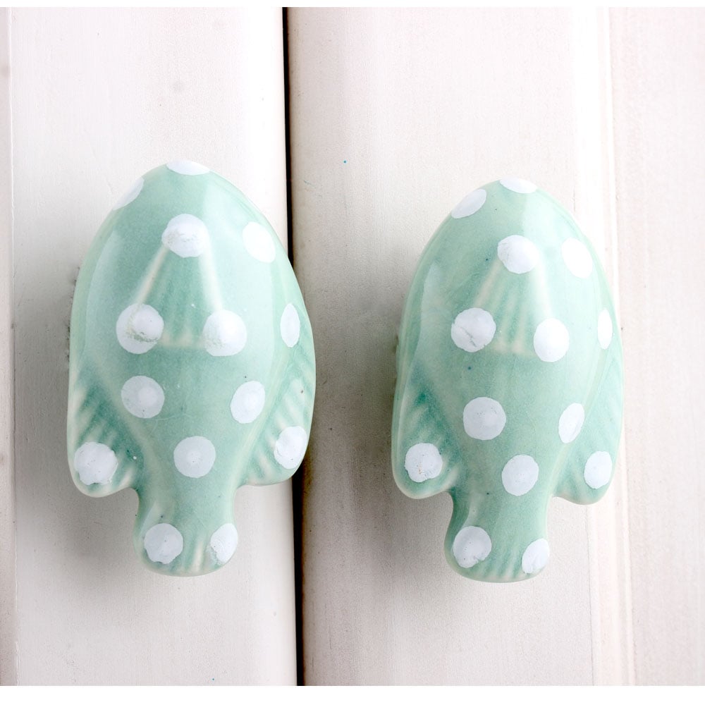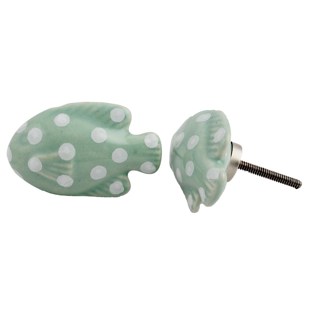 This green fish polka dot knob can be used in drawer, cabinet, dresser, wardrobe and cupboards. This modern door handle and knob requires no additional hardware. Bolt, Washer, Nut included for mounting.