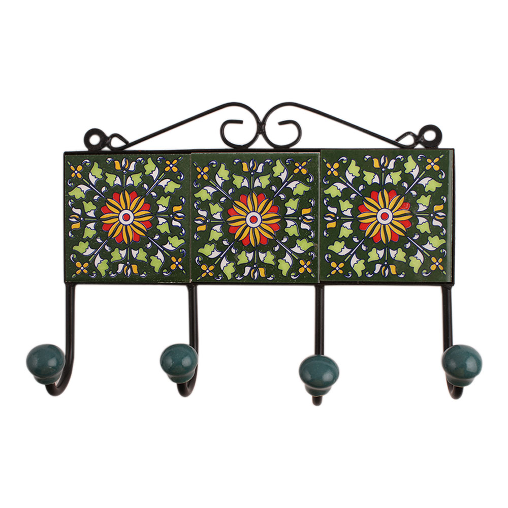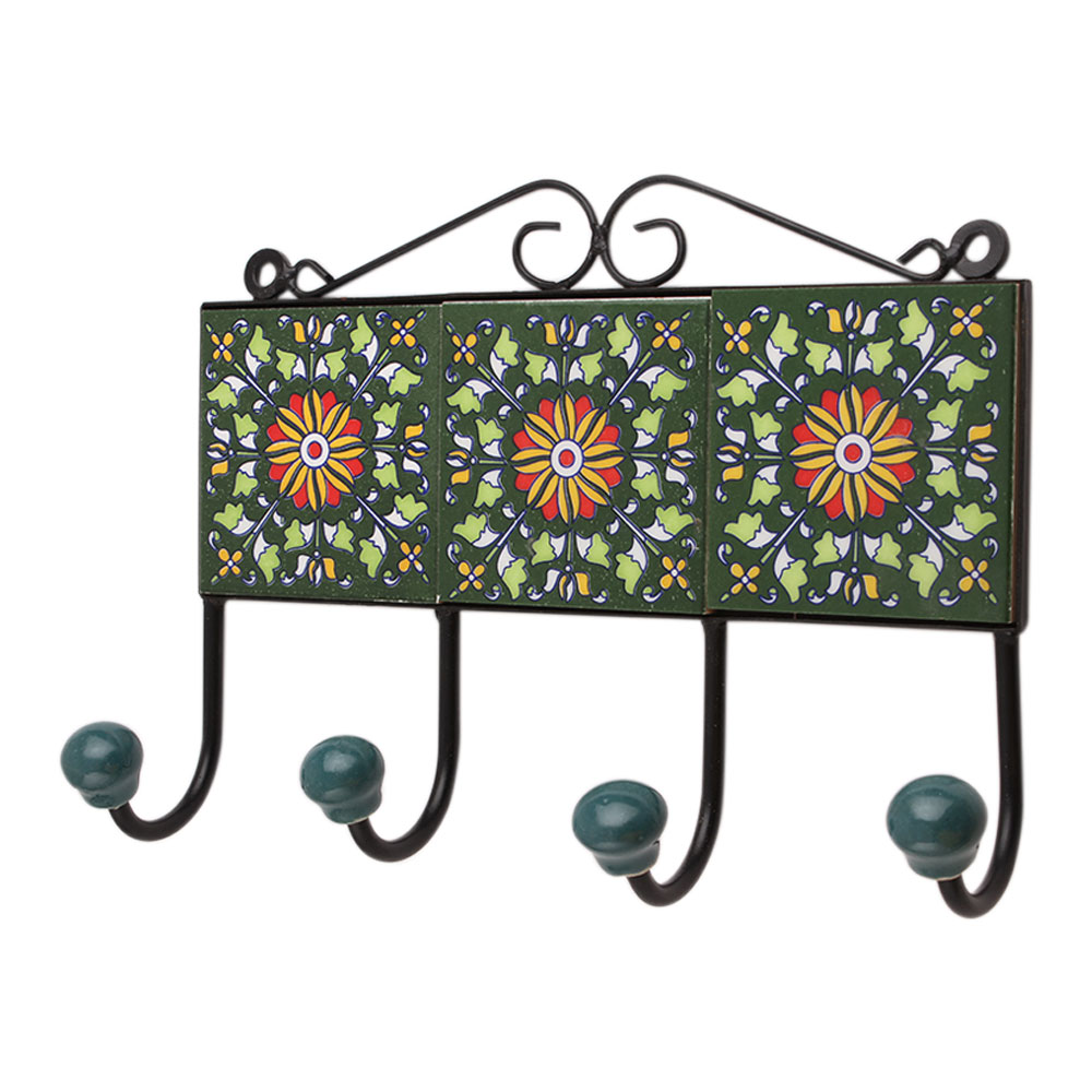 Green Floral Ceramic Tiles Hooks-472