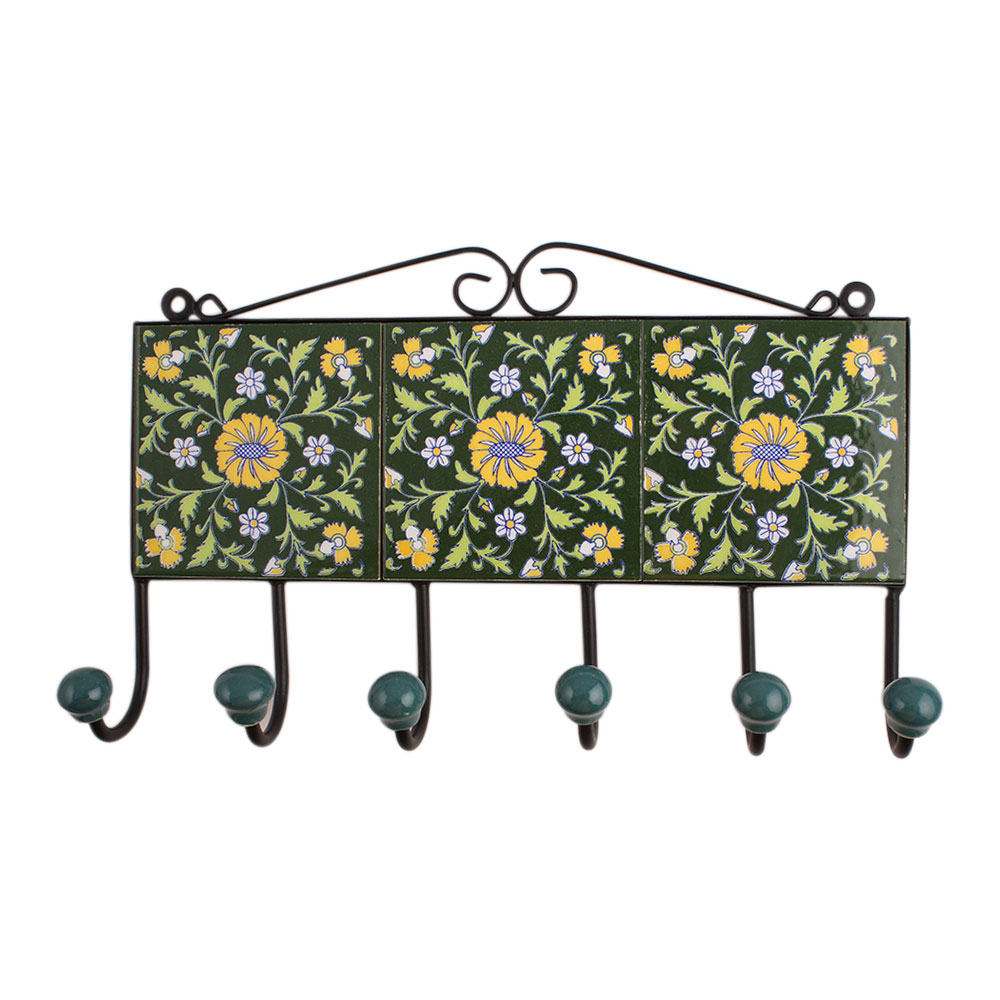 Green Floral Ceramic Tiles Hooks-475