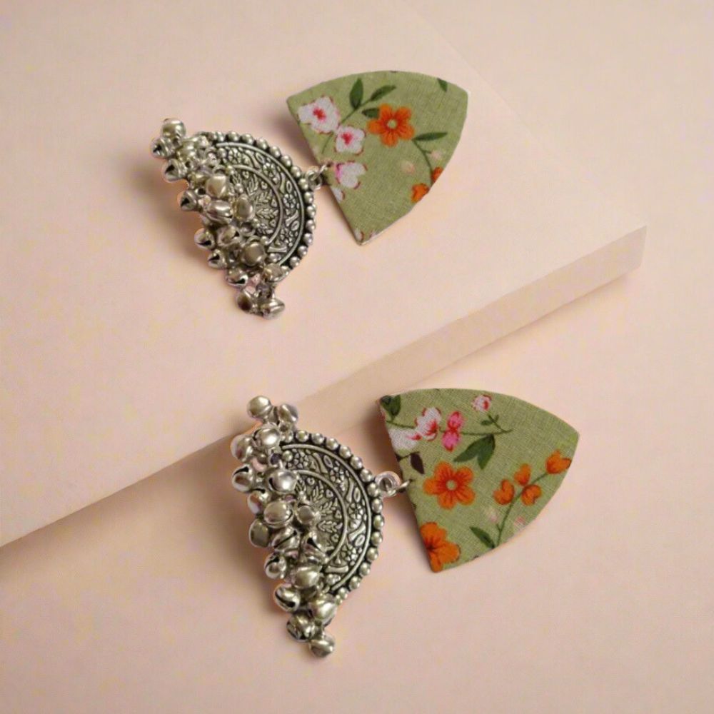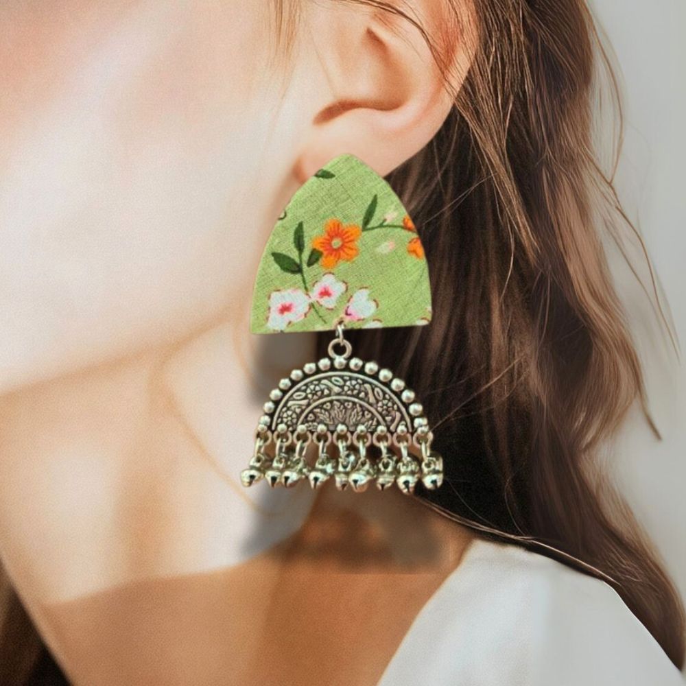 The Green Floral Printed Oxidized Earrings are a graceful blend of nature-inspired prints and vintage Indian jewellery aesthetics. Crafted on a fabric base, the floral pattern brings softness and organic charm, while the oxidized detailing adds depth and an heirloom-like character. Designed to be lightweight yet expressive, these earrings offer everyday comfort with festive appeal. They are ideal for women who love subtle statement jewellery rooted in craft and tradition.