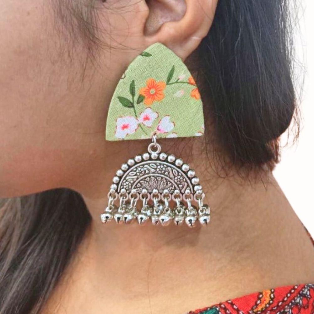 Pair these earrings with cotton sarees, linen kurtas, or boho fusion outfits, and store them in a dry pouch to preserve the fabric print and oxidized finish.