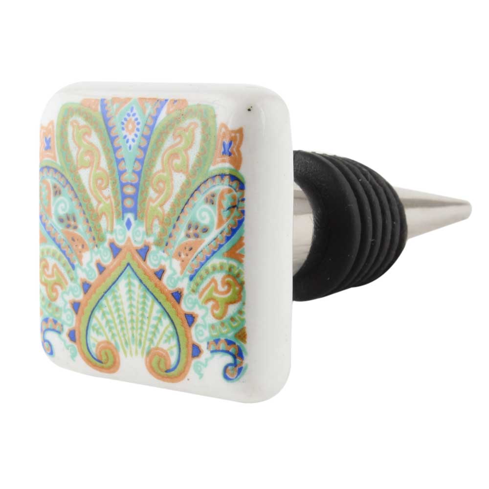 Crafted from durable ceramic and metal, this stopper not only prevents wine from spilling but also serves as a beautiful decoration. The flat ceramic surface with green floral printing is a visual delight, turning an everyday wine accessory into a statement piece. Whether you're hosting a dinner party, enjoying a casual evening, or looking for a thoughtful gift, this wine bottle stopper adds a touch of nature and elegance to your collection.