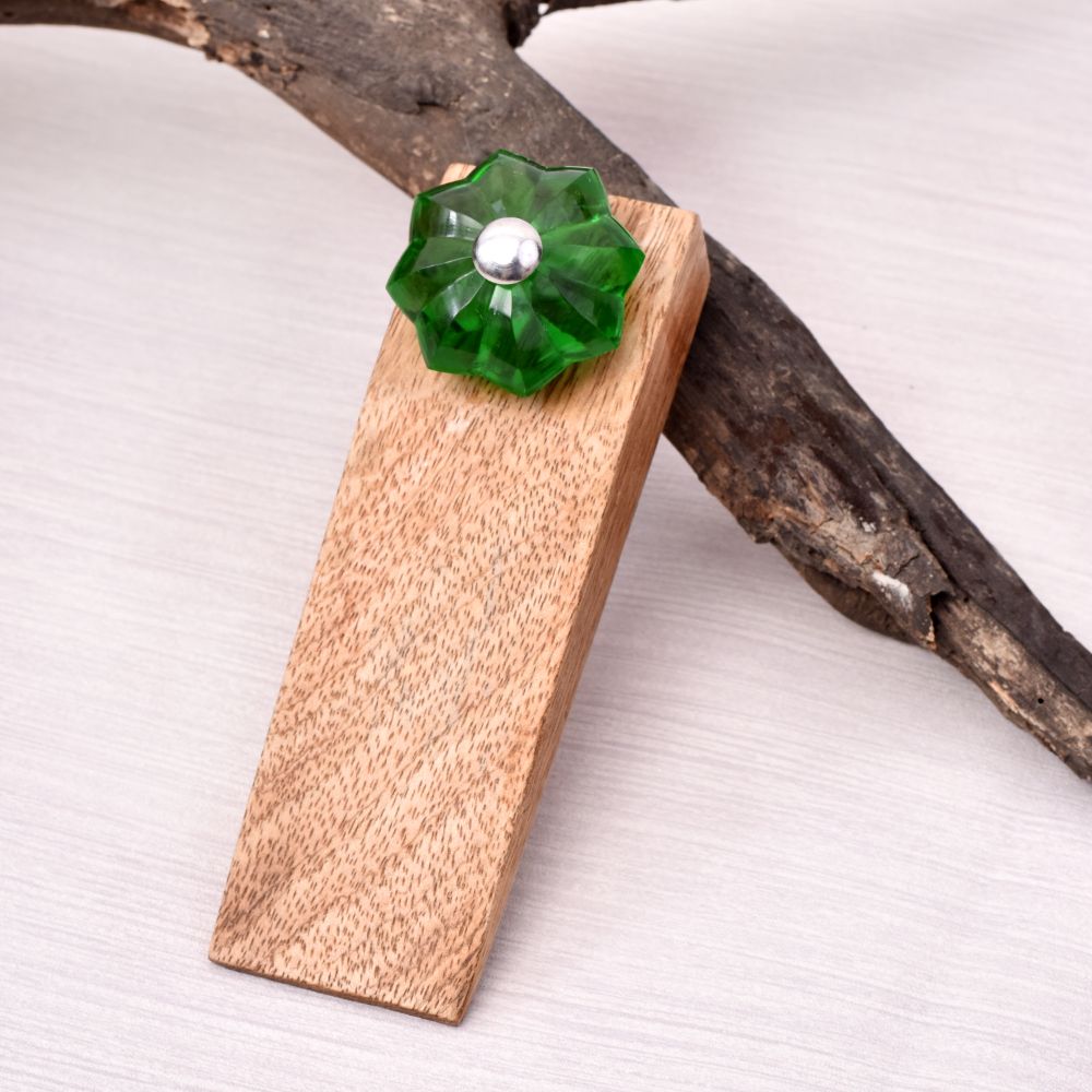 Buy a Wooden Door Stopper online that is a true masterpiece crafted with utmost precision and elegance. Handmade by highly skilled and experienced Indian artisans, this door stopper is a blend of timeless beauty and functionality. Made from high-quality wood, it exudes durability and strength, ensuring a long-lasting companion for your doors. The antique brown finish adds a touch of vintage charm to any space, while the vibrant green glass flower, meticulously created by skilled artisans, brings a delightful burst of colour and uniqueness. With a rubber grip meticulously placed underneath, slipping is never a concern, providing reliable support for your doors. This door stopper is not just a practical accessory but also a thoughtful gift option for your loved ones, especially during special occasions like housewarming.