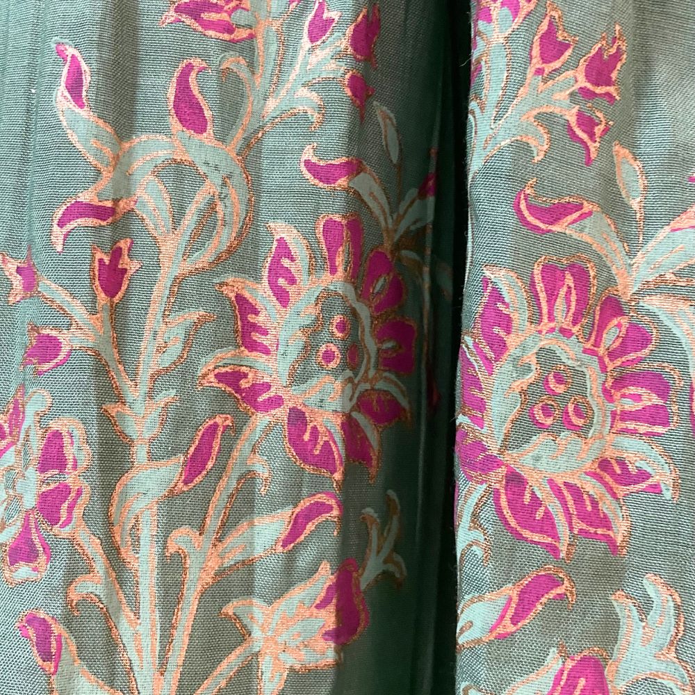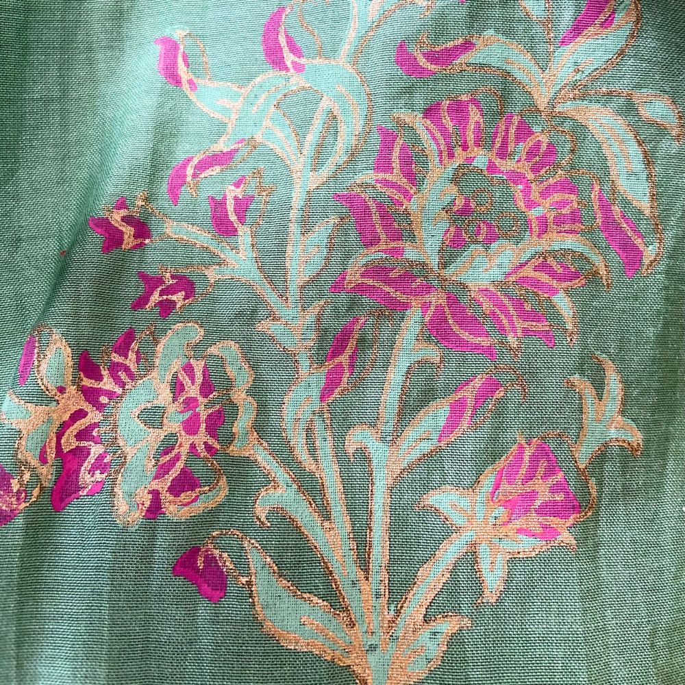 Elevate your ethnic wardrobe with this elegant Green Gathered Anarkali Set, crafted in soft muslin fabric and adorned with intricate hand block prints. The Anarkali features a flattering round neckline and three-quarter sleeves, complemented by fine floral motifs that reflect the richness of Indian craftsmanship. Its gathered silhouette enhances the feminine form while offering comfort and movement. Paired with a breathable cotton bottom in a matching green tone, this ensemble balances style and ease effortlessly. The lightweight viscose organza dupatta adds a graceful layer, finished with printed borders for a refined touch. Perfect for festive gatherings, weddings, or cultural events, this handcrafted suit set brings together traditional aesthetics and modern flair. Whether styled with statement earrings or classic juttis, this green Anarkali set is a timeless piece designed for elegance in every step. Make a lasting impression with this block-printed ensemble, rich in detail, heritage, and sophistication.