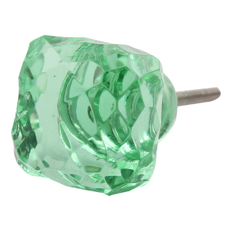 Green Glass Square Cut Knobs. Ideal for Drawer, Dresser, Cabinet, Wardrobe, Cupboard and almirah