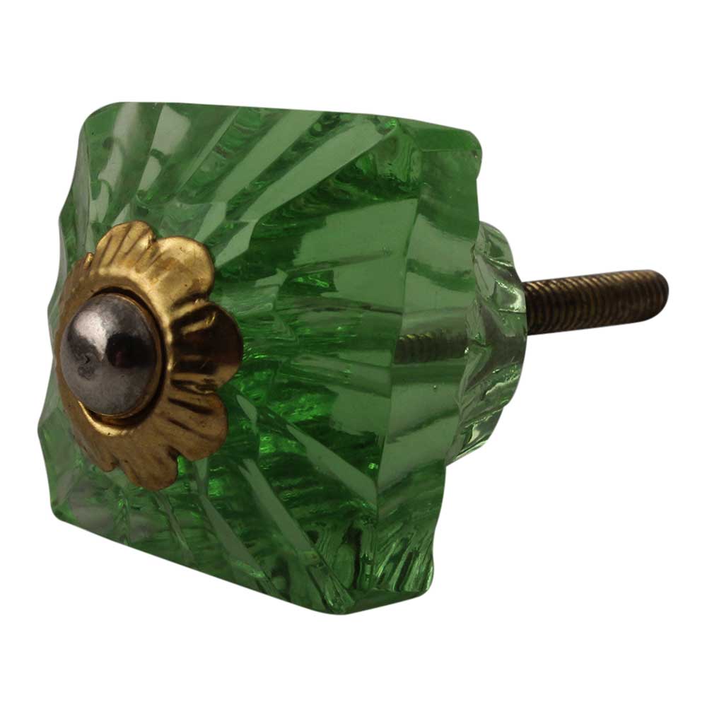 Green Glass Square Cut Knobs. Ideal for Drawer, Dresser, Cabinet, Wardrobe, Cupboard and almirah