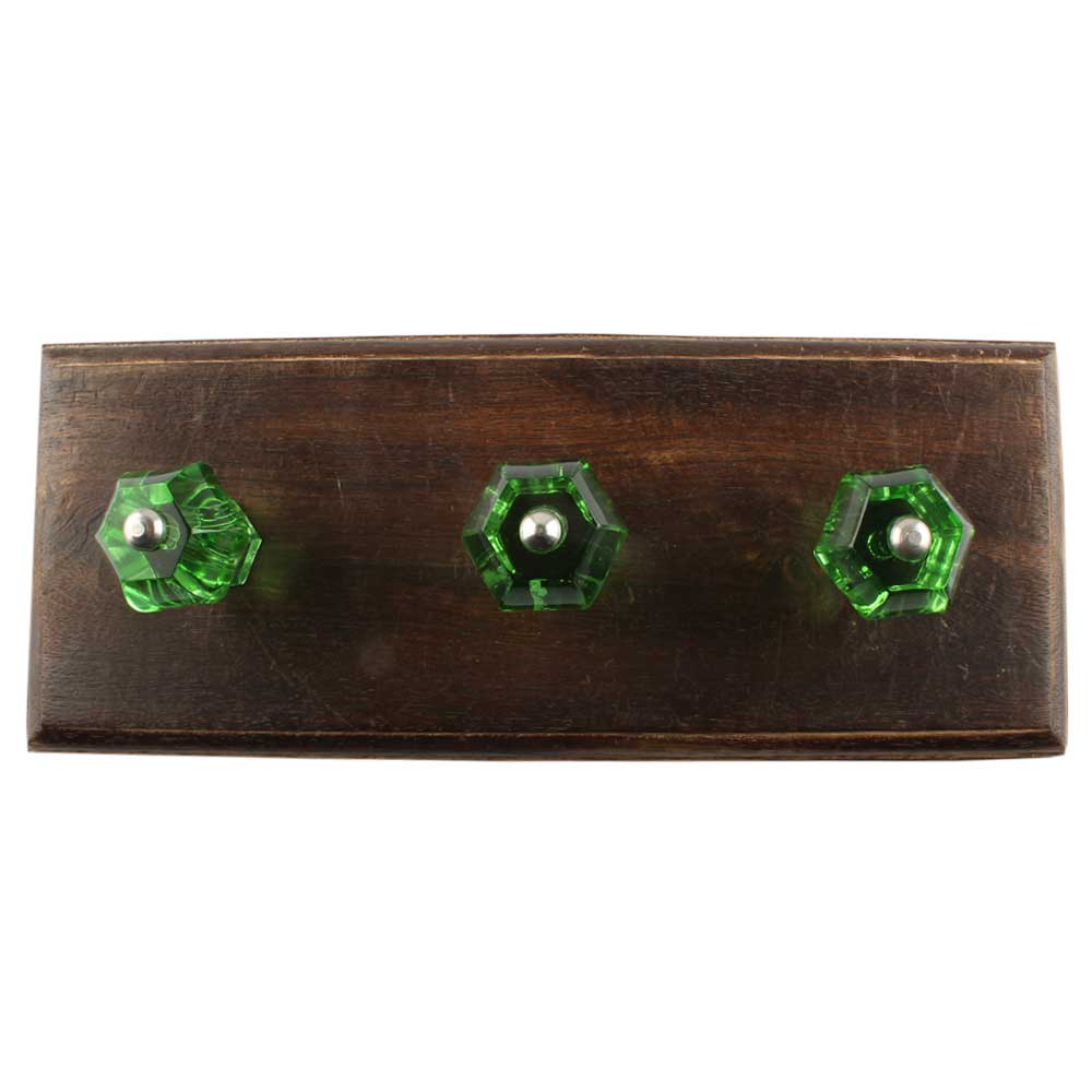 Elevate your wall storage with the Green Hexagon Glass Cut Wooden Hook—a perfect blend of functionality and refined design. This handcrafted wall hook features a faceted green glass knob in a striking hexagon shape, securely mounted on a smooth wooden base. The bold emerald tone and crystal-like texture give it a gemstone-inspired appearance that reflects light beautifully. Whether used alone or styled in a set, this decorative hook adds a pop of personality and polish to your space.