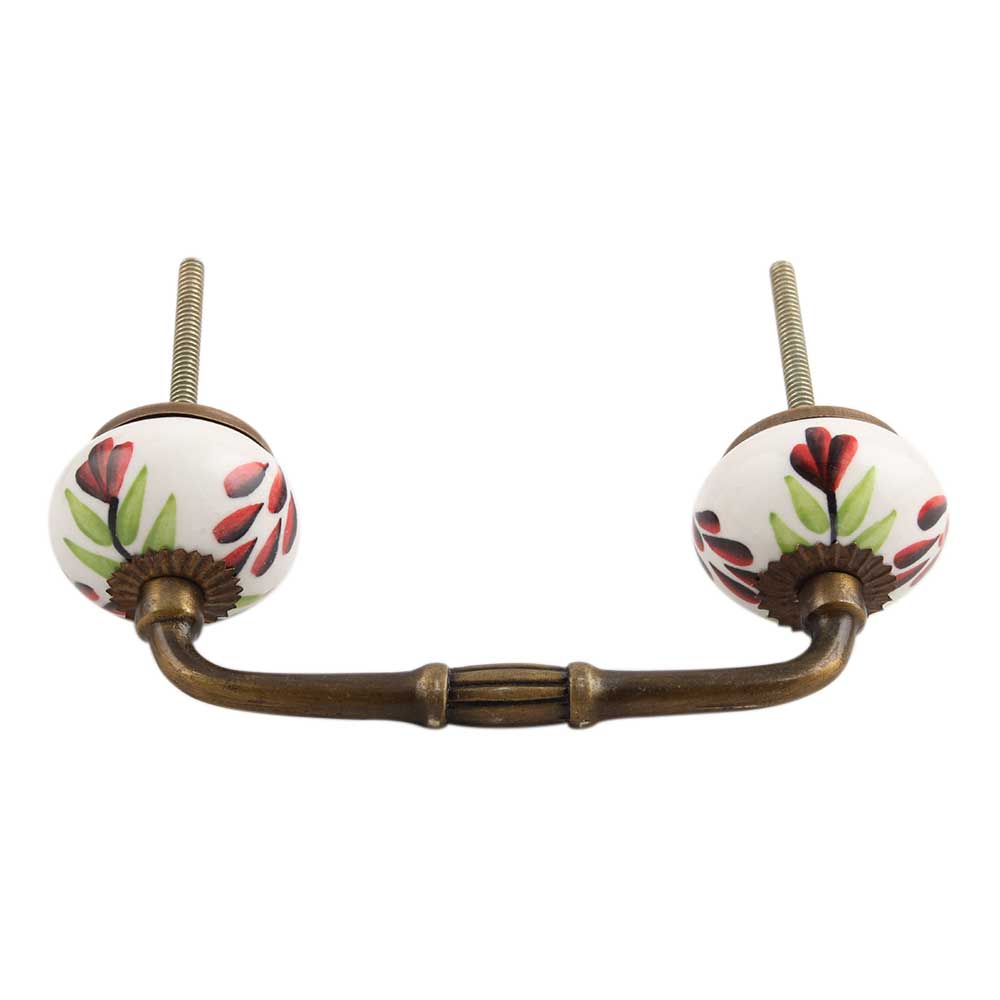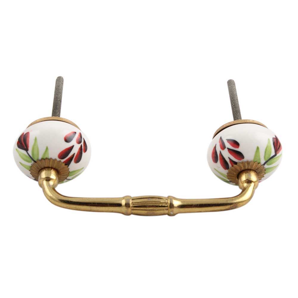 Green Leaf Ceramic Bridge Handle. Ideal for Drawer, Dresser, Cabinet, Wardrobe, Cupboard and Almirah.