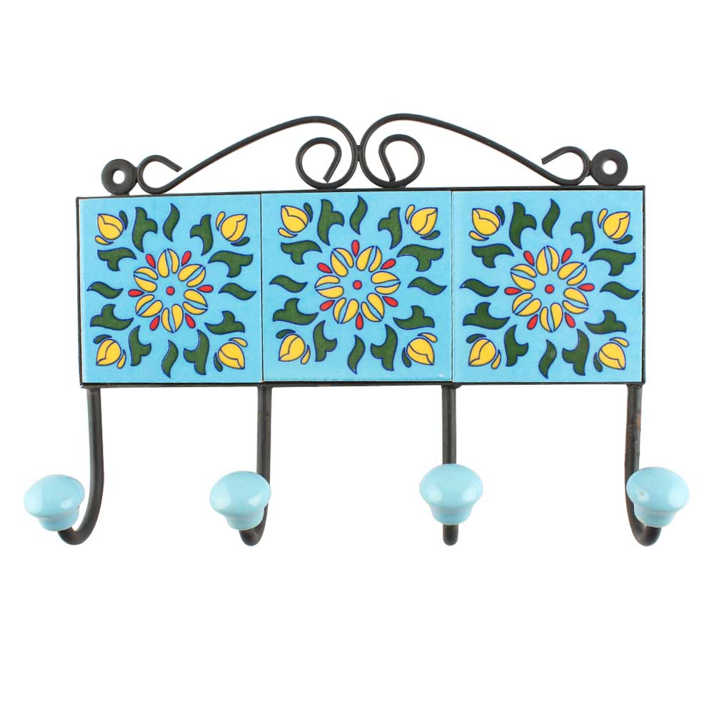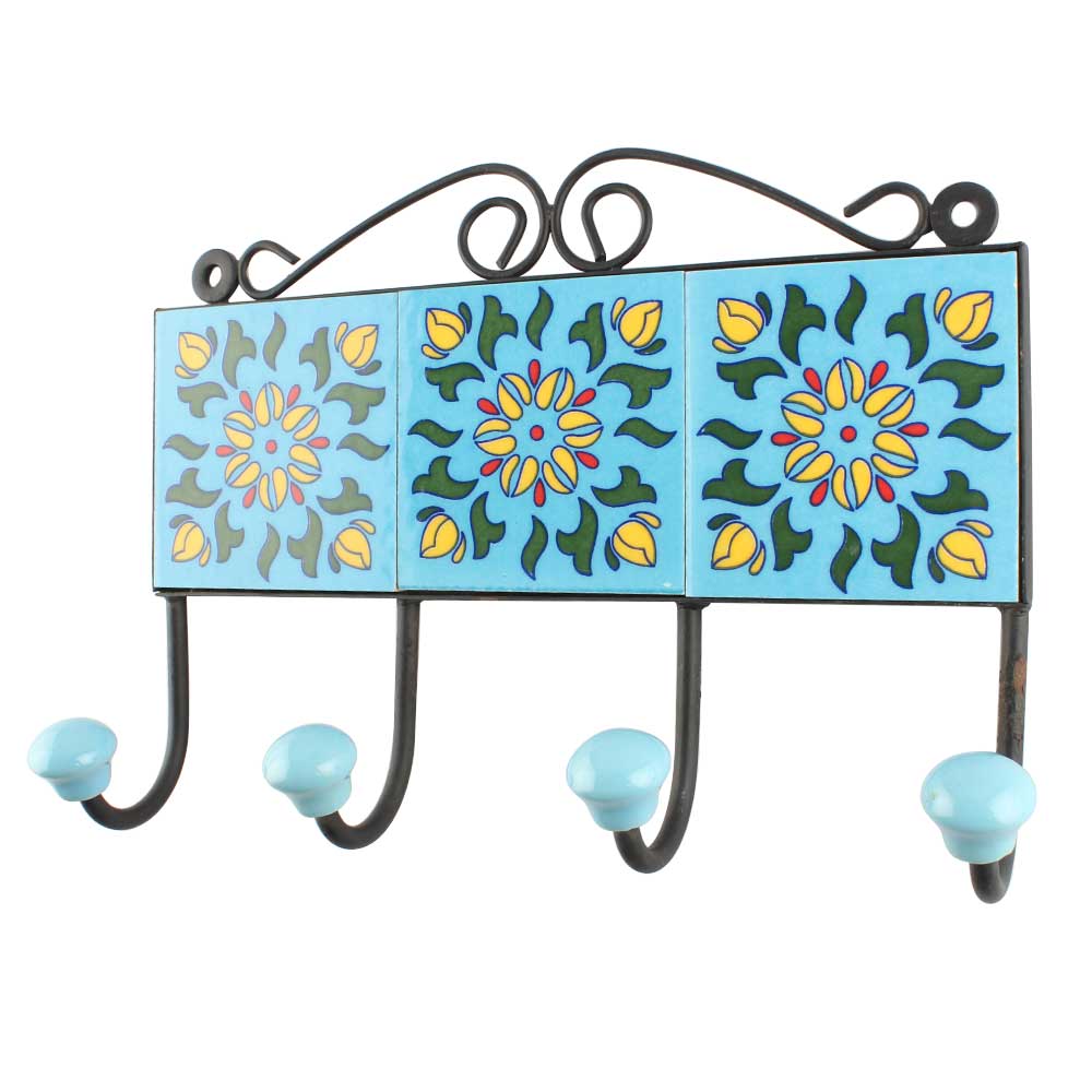 Green Leaf Ceramic Floral Tiles Hook. When Put on Wall or Cabinet It is An Art in Itself. The Metal Part of this Hook is Black Powder Coated.