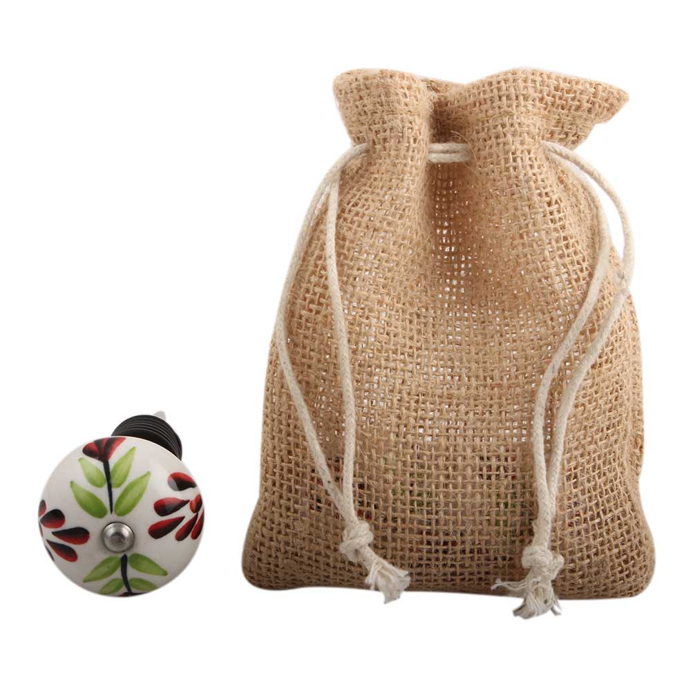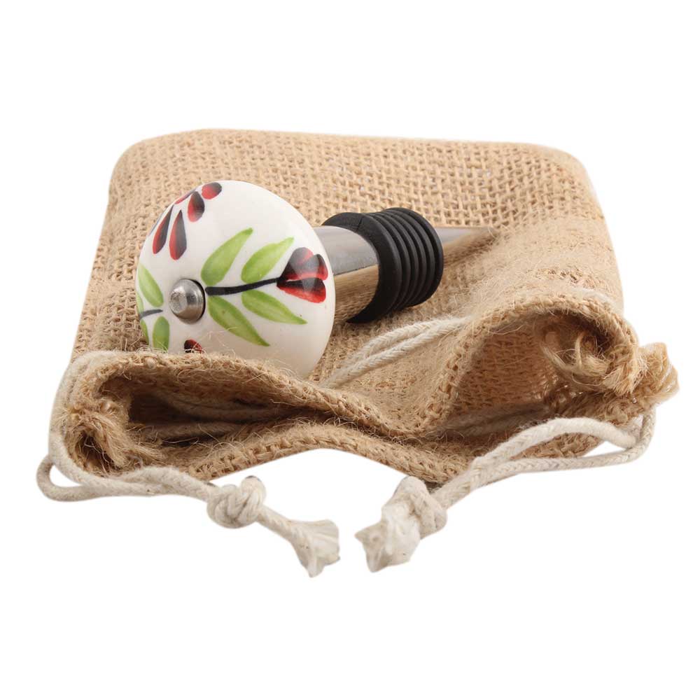 Green Leaf Ceramic Wine Stopper.zinc alloy wine bottle stopper with attractive Jute Bag Packaging.