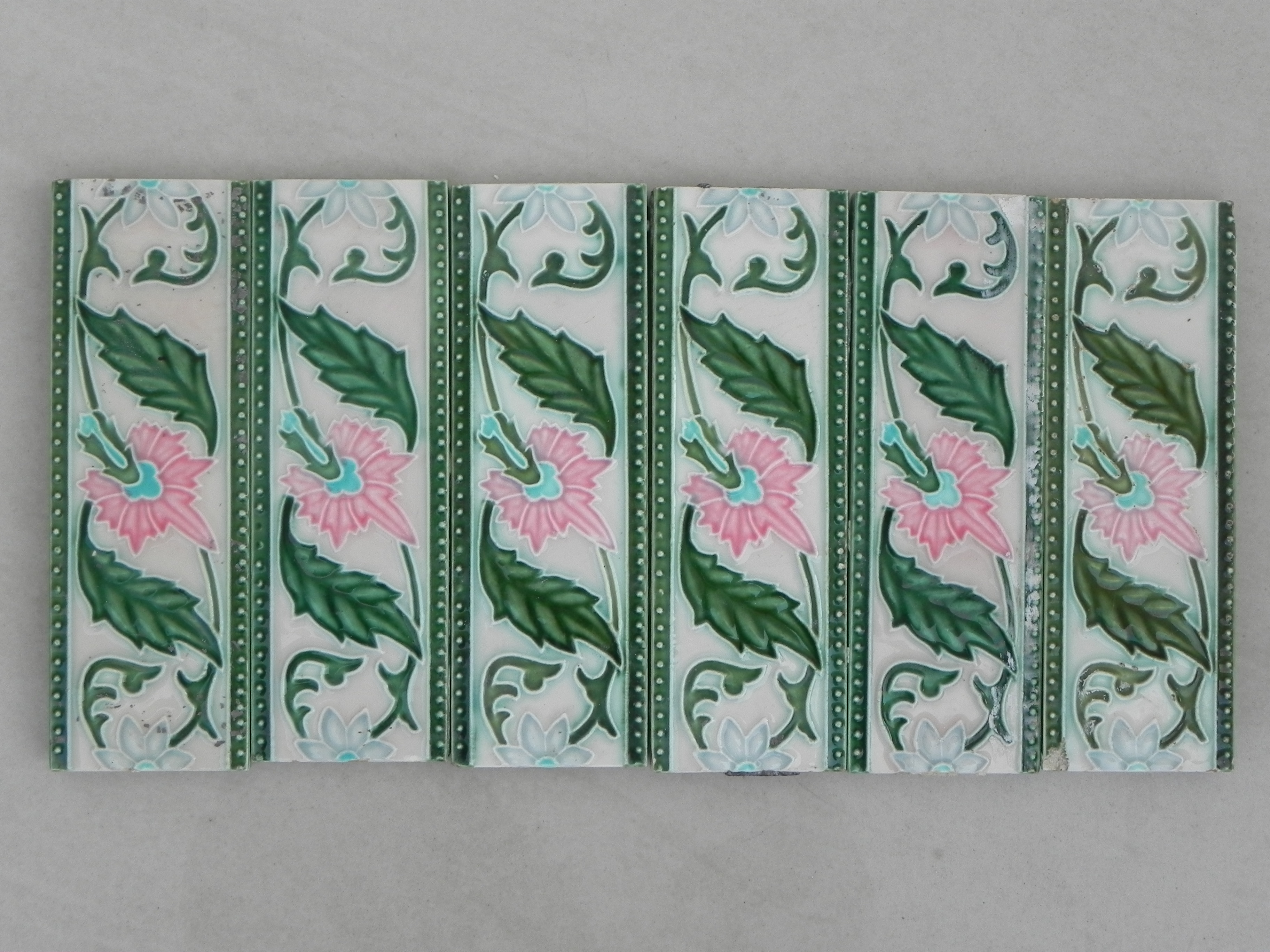 Though the owners of these old havelis simply neglected these old tiles while demolishing their havelis, these tiles caught interest of collectors and interior decorators because of their graceful Art Nouveau and Art Deco motifs. These tiles have incredibly luminescent colors, and their texture smooth as silk. Fine cracks on them (which got developed over the period of time) add antique value to them.