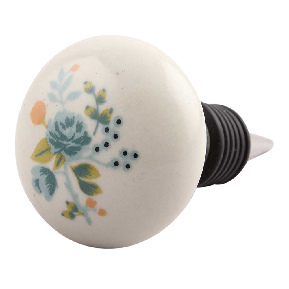 Green Marjoram Flower Ceramic Wine Stopper.zinc alloy wine bottle stopper with attractive Jute Bag Packaging.