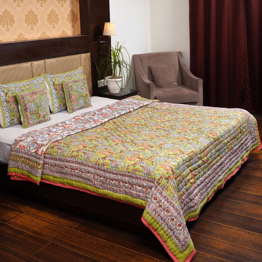Each piece is individually hand-block printed by skilled artisans, ensuring no two quilts are exactly alike.