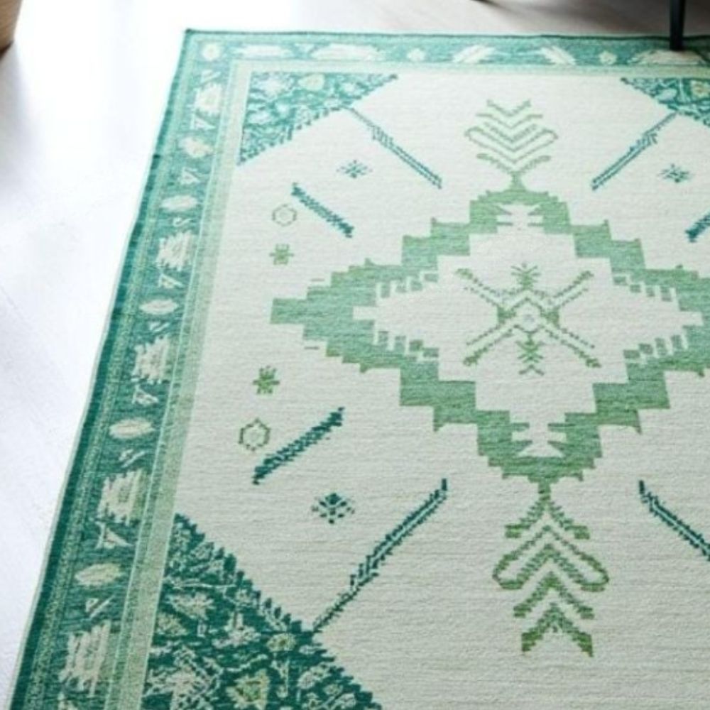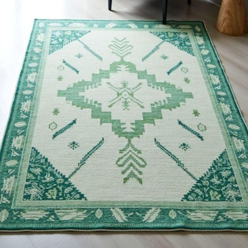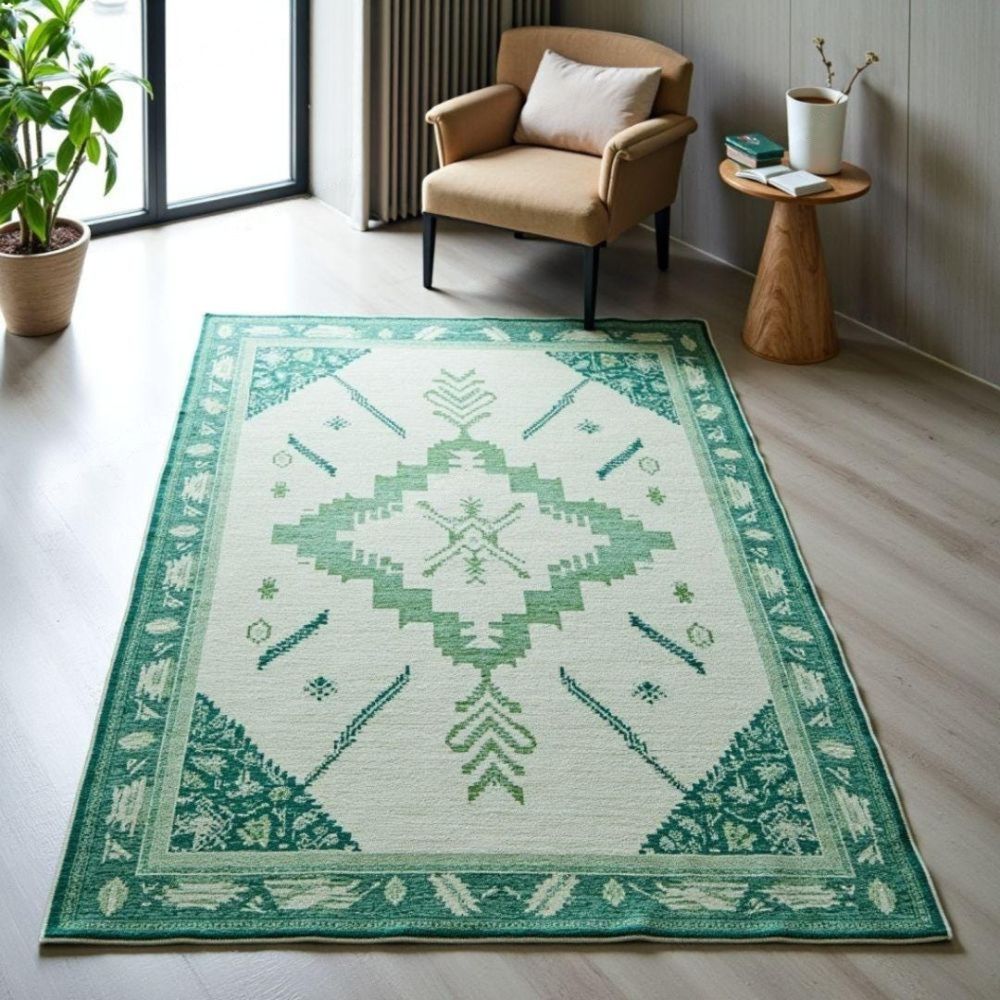 • Green Medallion Wool Rug