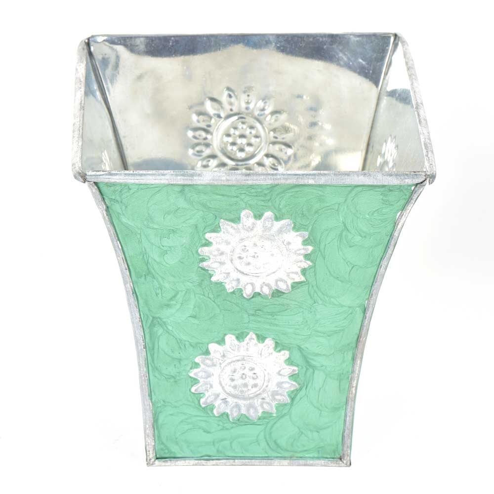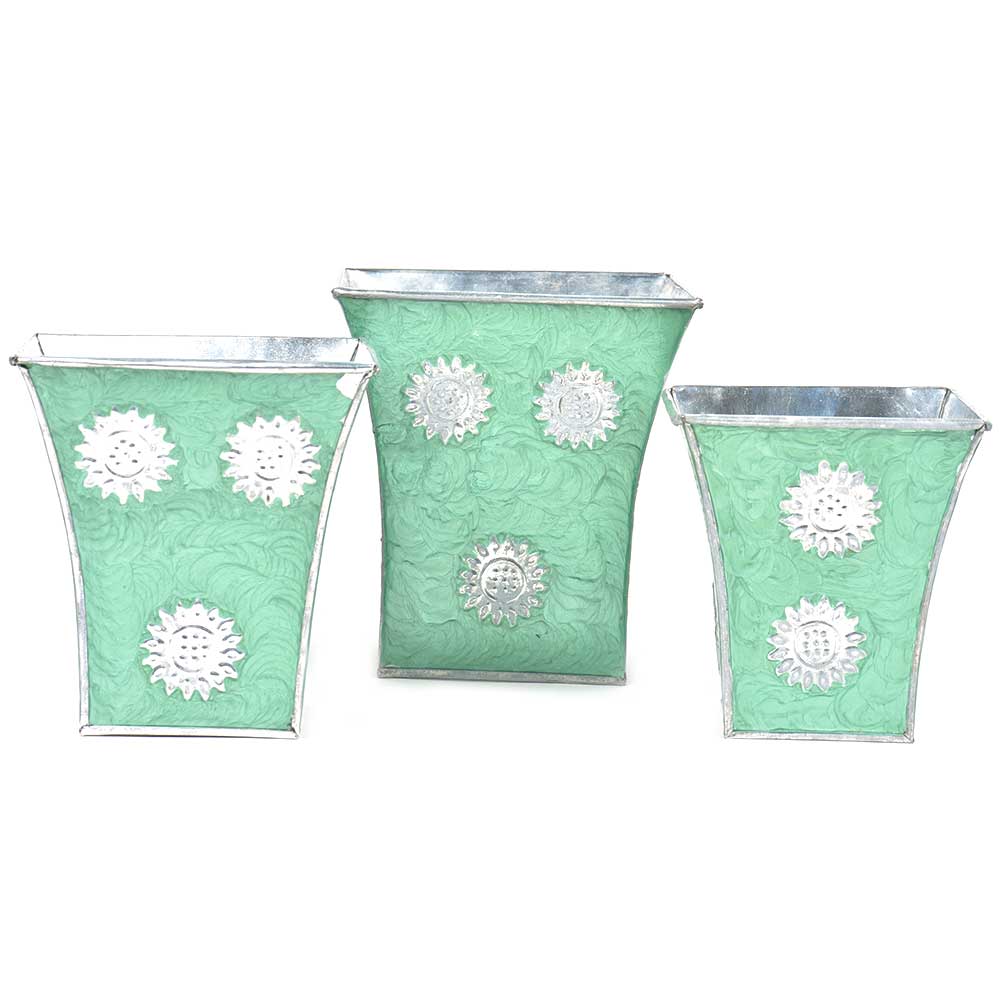 Green Silver Engraved Metal Flower Pots and Planters In Set Of 3