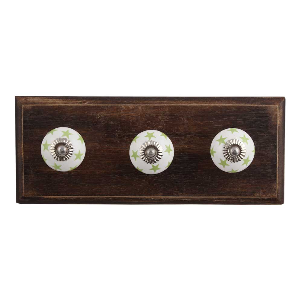 Green Star Ceramic Wooden Hook. A Perfect Complement to the Soft Tone of the Wood are these White Traditional Hat & Coat Hook Made of Genuine Porcelain and Brass. It can be use to Hang Jewellery, Leashes, Towels, Scarves, Light Weight Sweaters, Caps Etc.