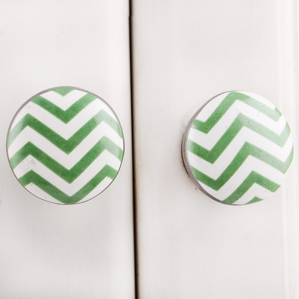 Green Striped Flat Ceramic Knob