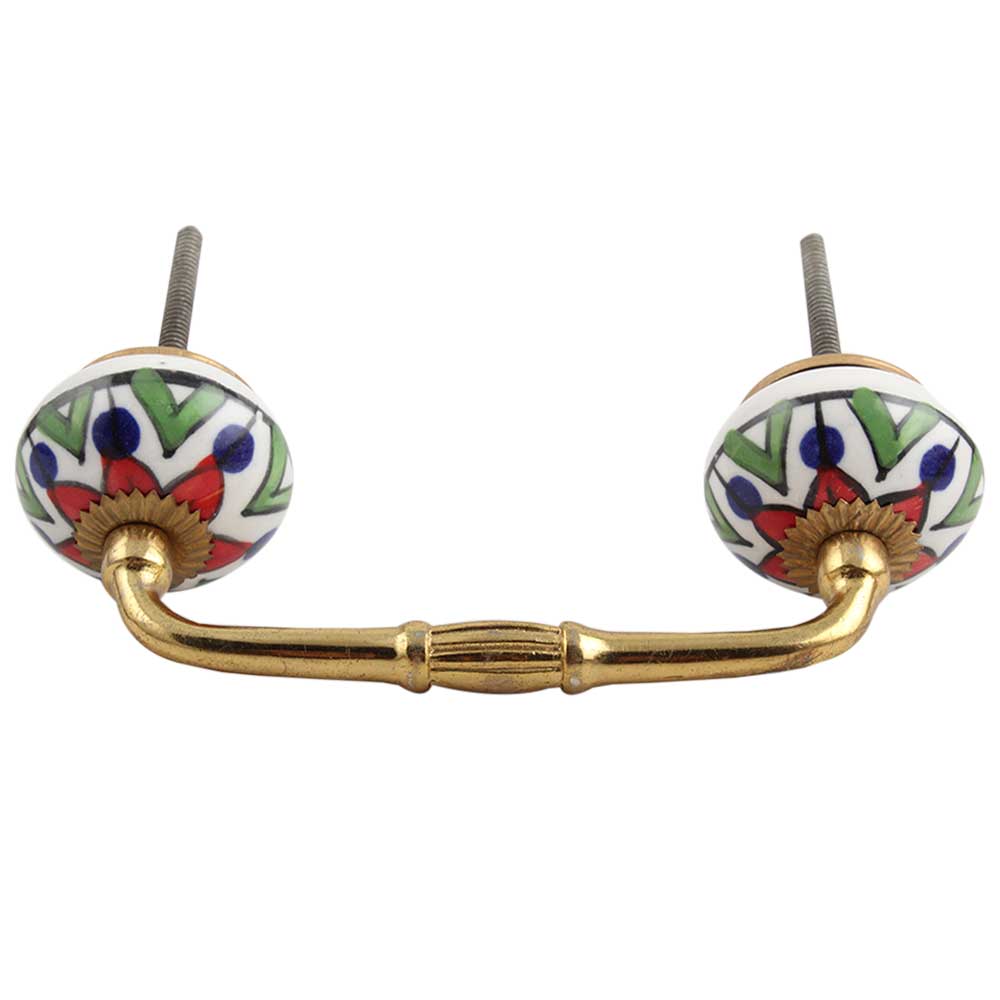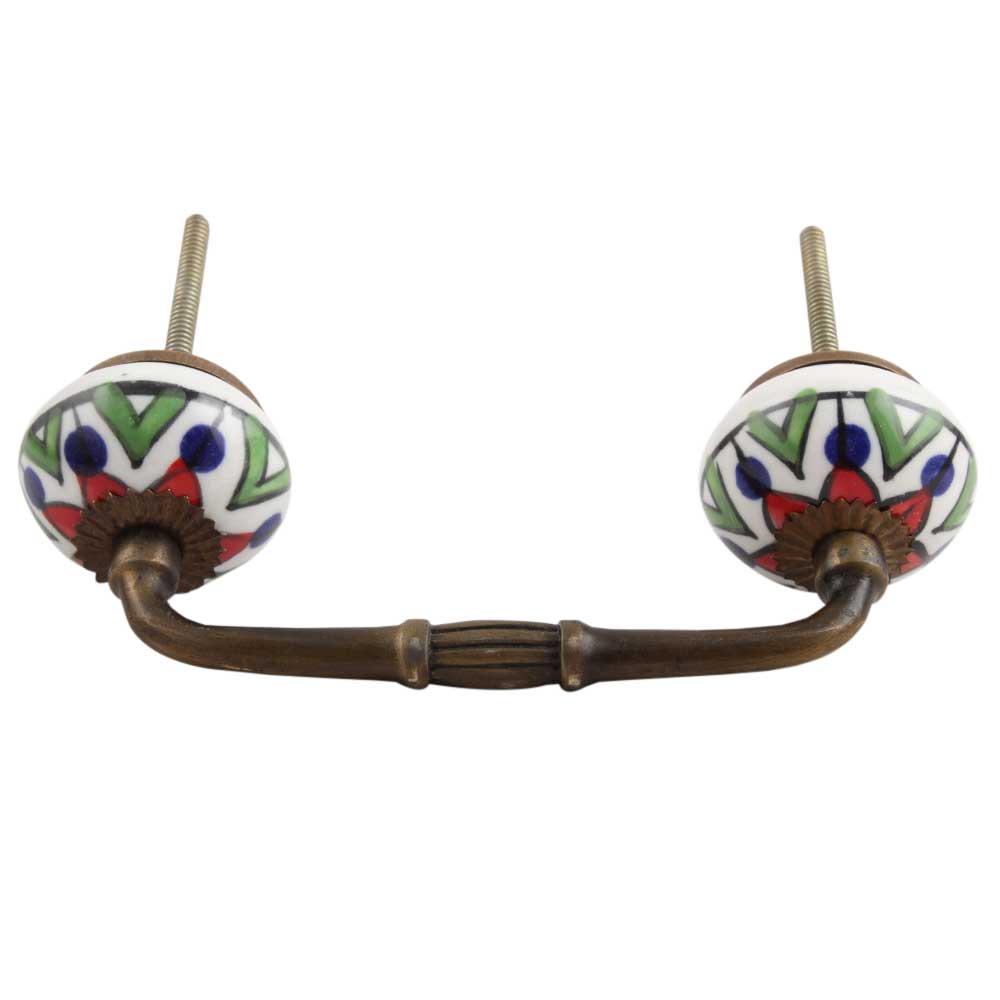Green Triangle Ceramic Bridge Handle. Ideal for Drawer, Dresser, Cabinet, Wardrobe, Cupboard and Almirah.
