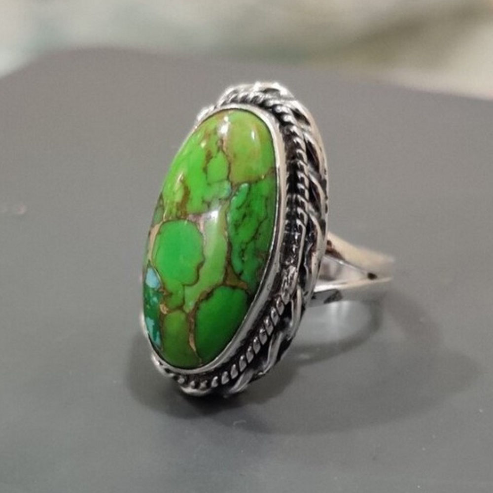 Highlight Features of Natural Green Turquoise Boho Ring