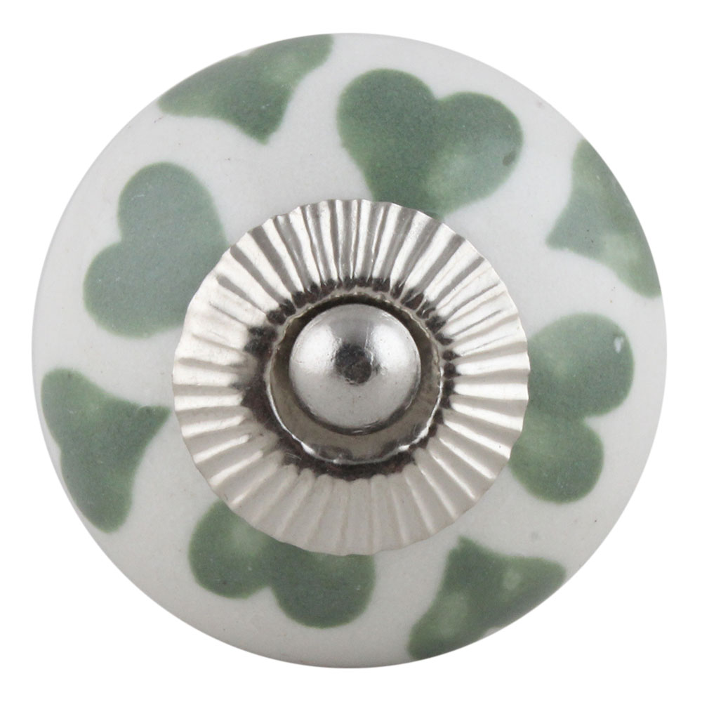Green & White Ceramic Floral Knob With Size 1.5 Diameter. Ideal for Drawer, Dresser, Cabinet, Wardrobe, Cupboard and almirah
