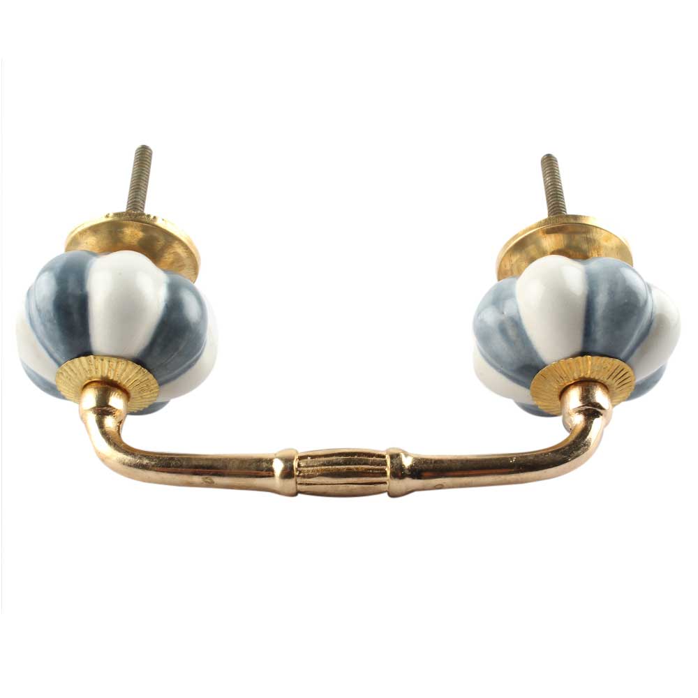 Grey And White Ceramic Melon Bridge Handle. Ideal for Drawer, Dresser, Cabinet, Wardrobe, Cupboard and Almirah etc.