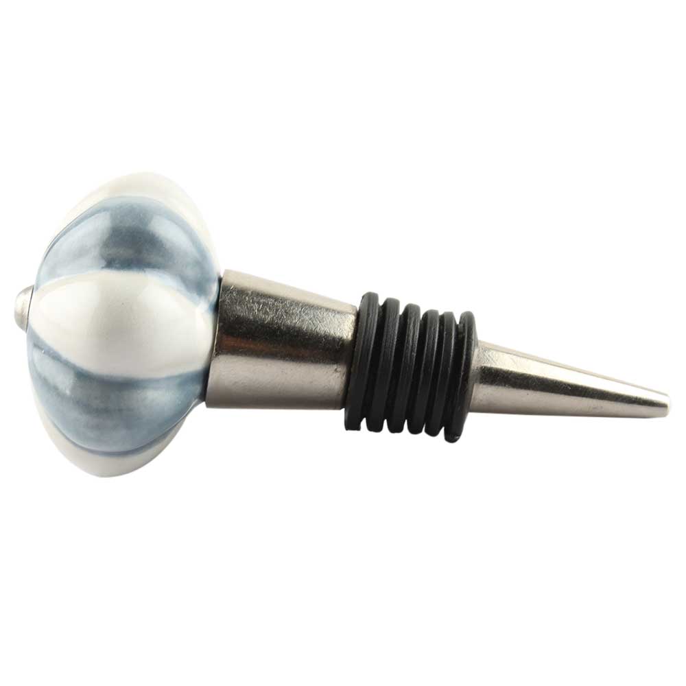 Grey And White Ceramic Melon Wine Stopper. Zinc Alloy Wine Bottle Stopper with Attractive Jute Bag Packaging.