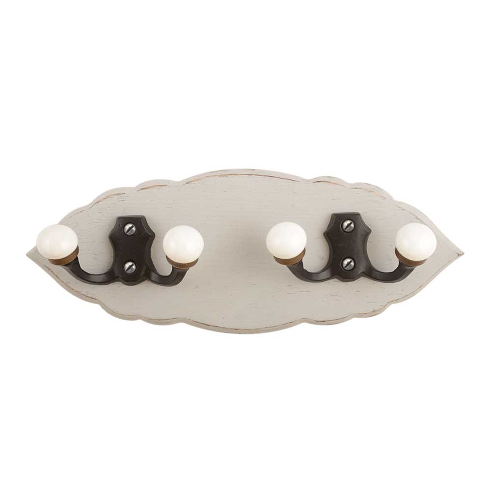 Grey Black Double Loop Ceramic Iron Wooden Hooks. A Perfect Complement to the Soft Tone of the Wood are these White Traditional Hat & Coat Hook Made of Genuine Porcelain and Brass. It can be use to Hang Jewellery, Leashes, Towels, Scarves, Light Weight Sweaters, Caps Etc.