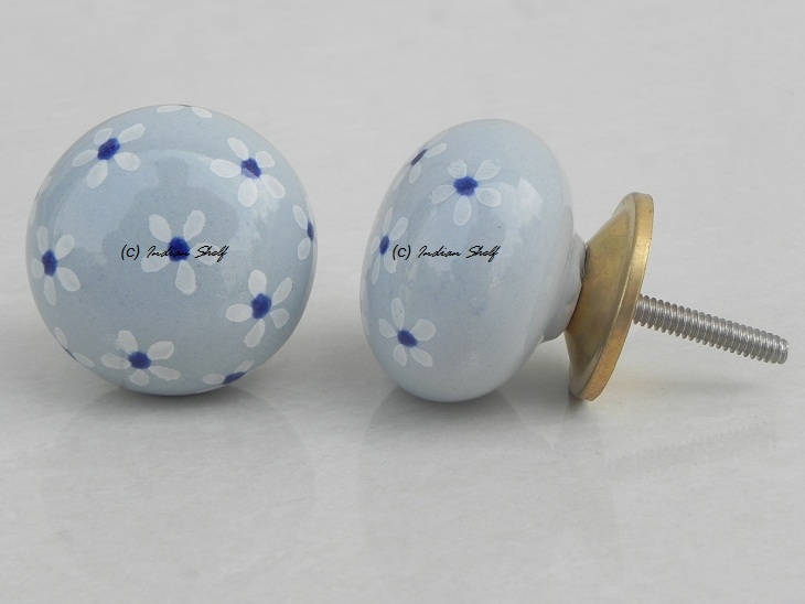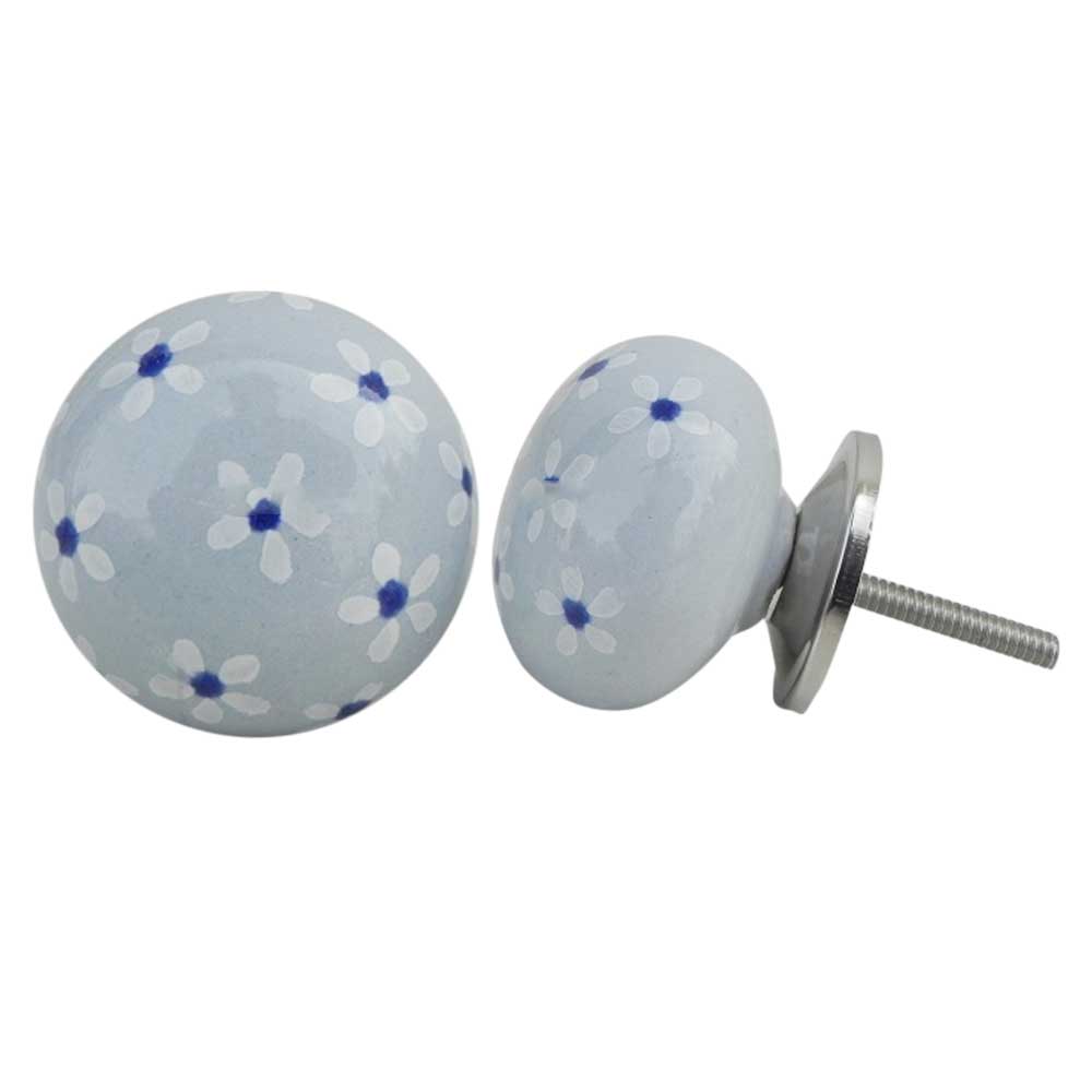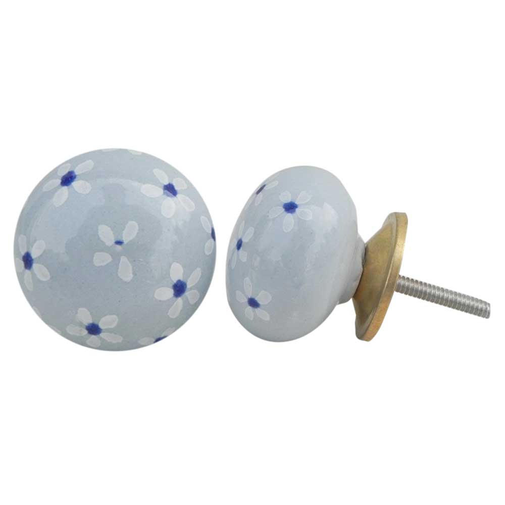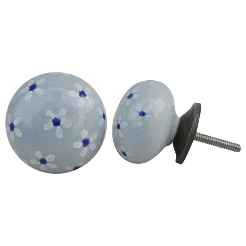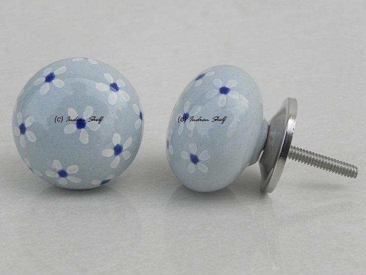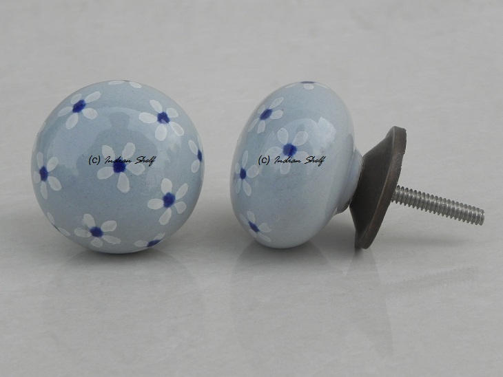 Grey Blue Flower Ceramic Knob. Ideal for kitchen cabinets, kitchen drawers, dining room, bed room, chest drawers, dressing tables, almirah