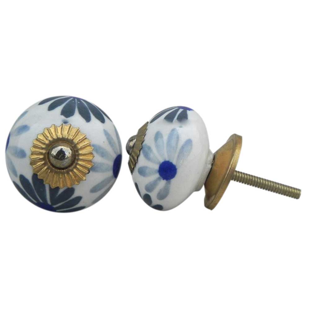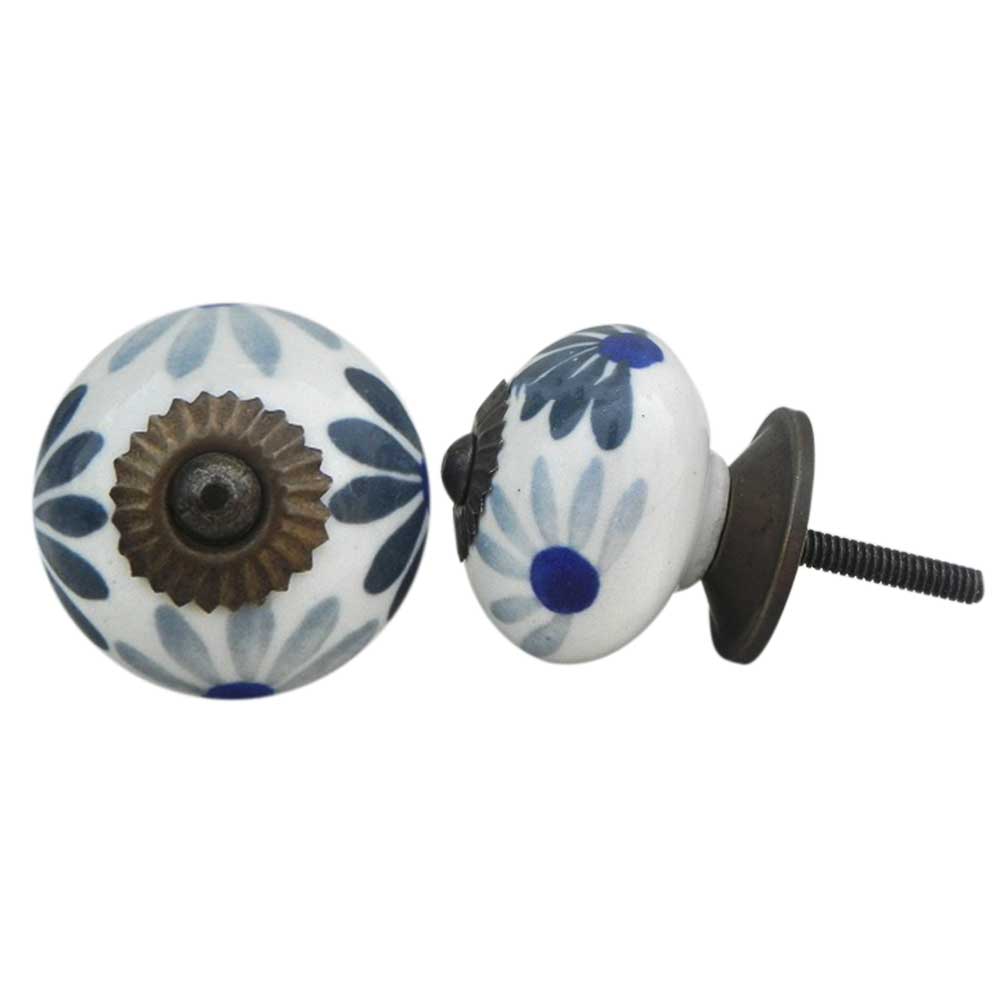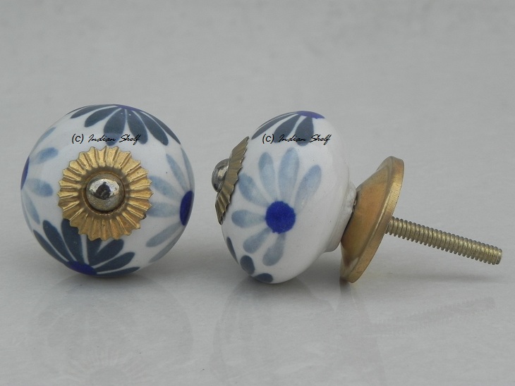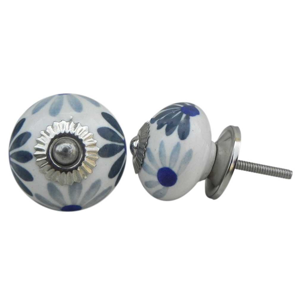 Grey Blue Flower Ceramic Knob. Ideal for kitchen cabinets, kitchen drawers, dining room, bed room, chest drawers, dressing tables, almirah