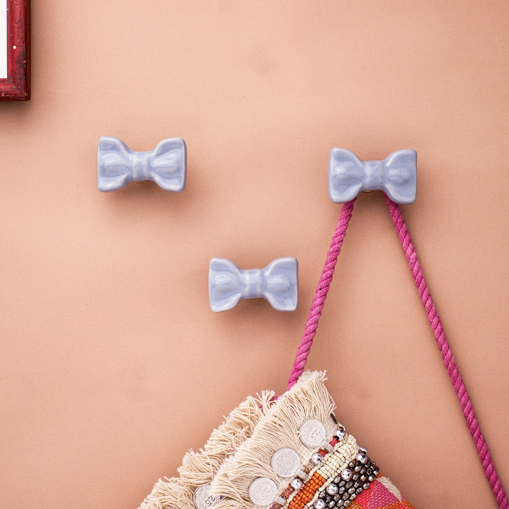 Grey Ceramic Bow Modern Wall Hook-Pack of 3