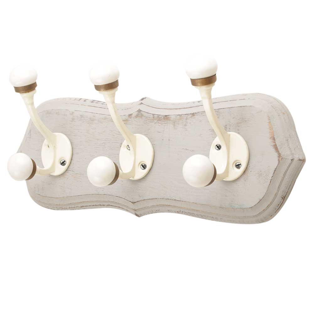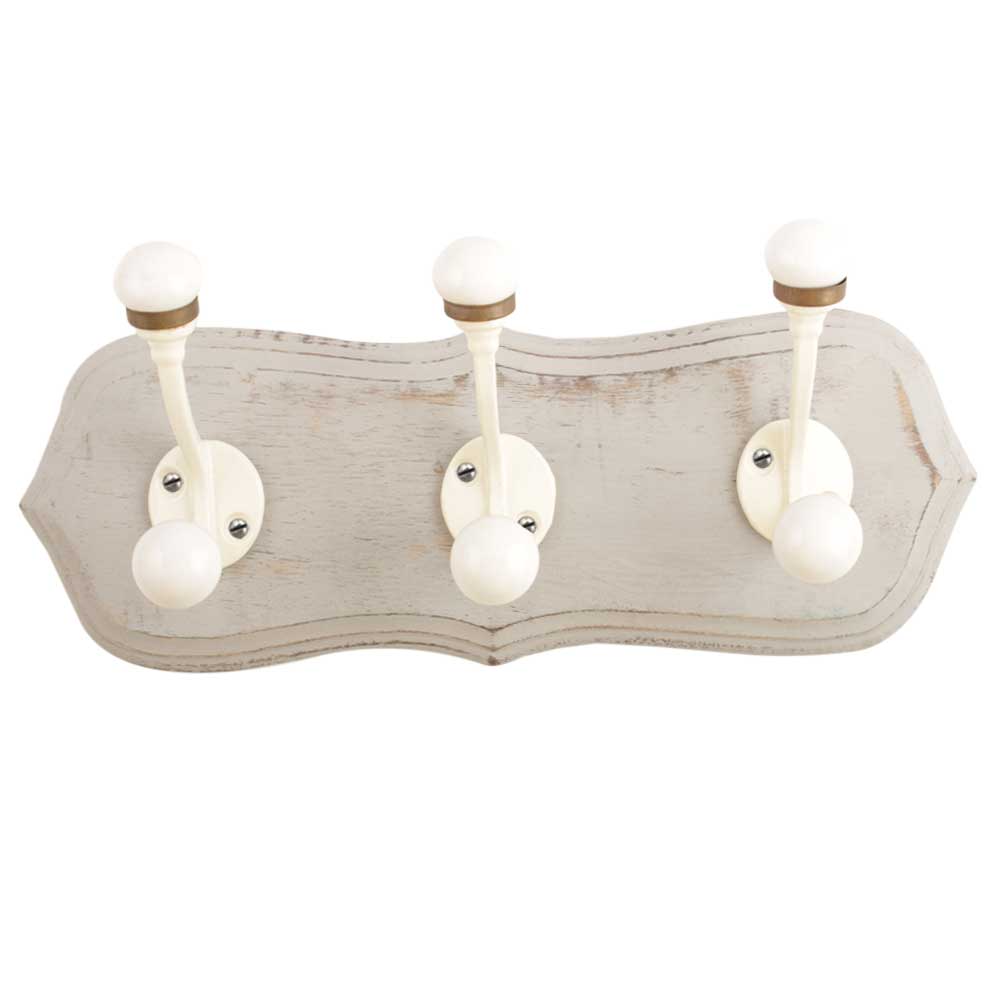 Grey Cream Double Loop Ceramic Iron Wooden Hooks. A Perfect Complement to the Soft Tone of the Wood are these White Traditional Hat & Coat Hook Made of Genuine Porcelain and Brass. It can be use to Hang Jewellery, Leashes, Towels, Scarves, Light Weight Sweaters, Caps Etc.