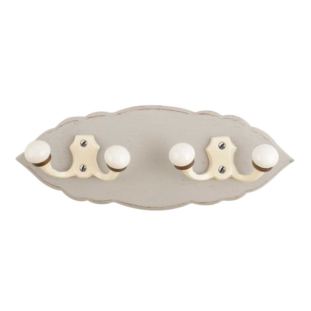 Grey Cream Double Loop Ceramic Iron Wooden Hooks. A Perfect Complement to the Soft Tone of the Wood are these White Traditional Hat & Coat Hook Made of Genuine Porcelain and Brass. It can be use to Hang Jewellery, Leashes, Towels, Scarves, Light Weight Sweaters, Caps Etc.