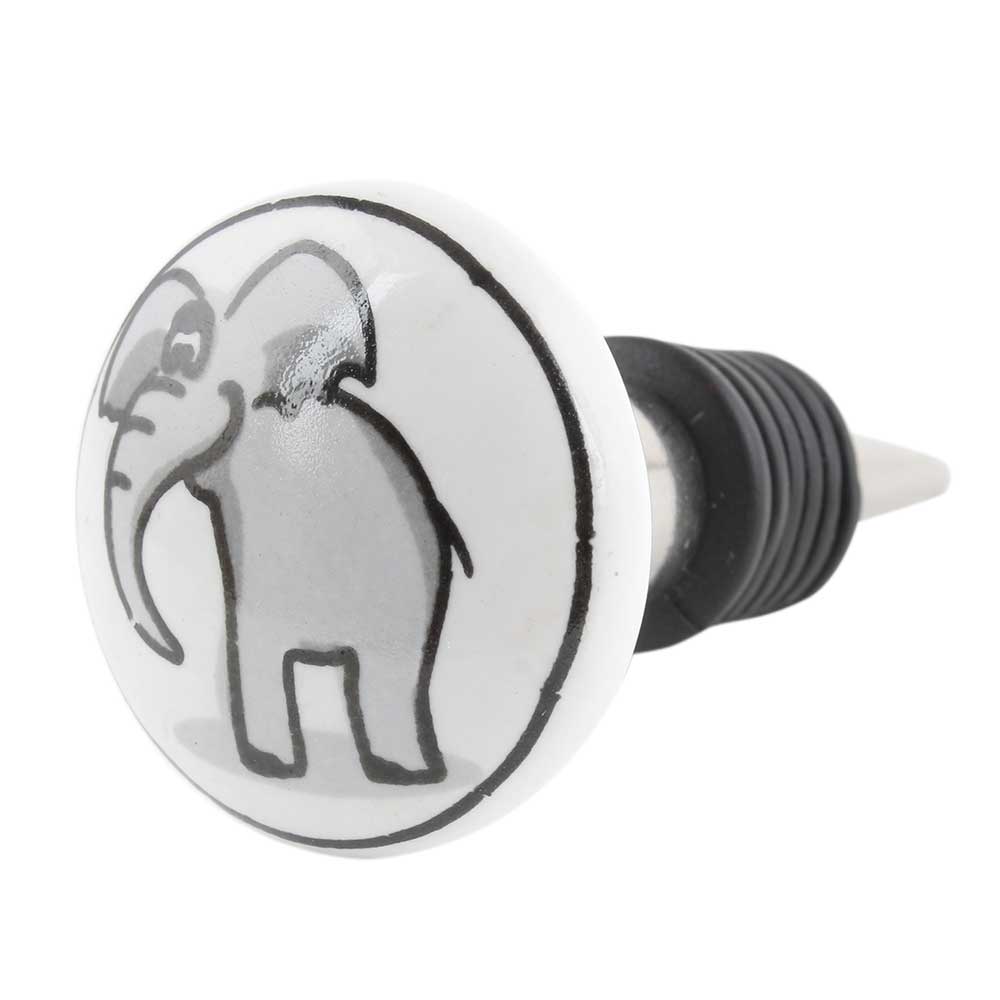 Grey Elephant Ceramic Flat Wine Bottle Stopper