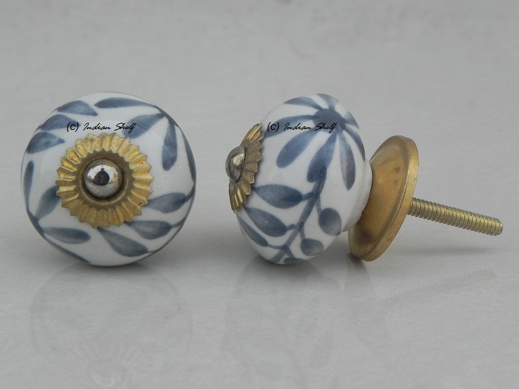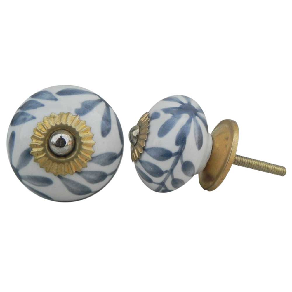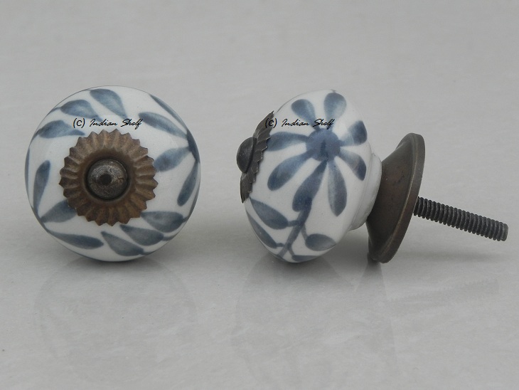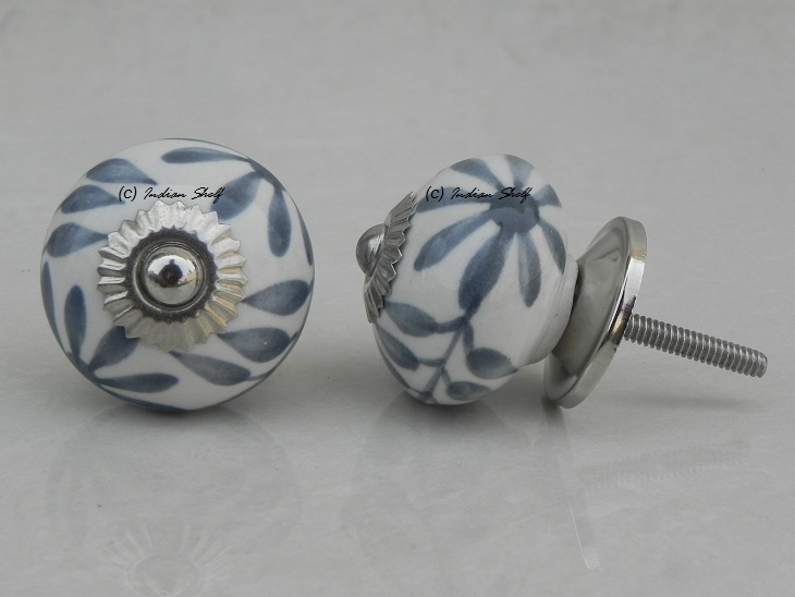 Grey Floral Leaf Ceramic Knob. Ideal for kitchen cabinets, kitchen drawers, dining room, bed room, chest drawers, dressing tables, almirah