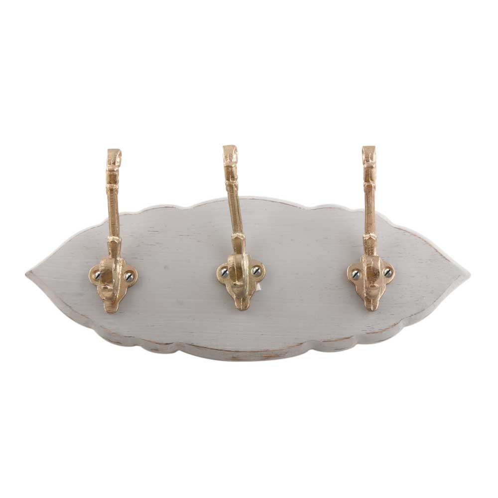 Grey And Golden Small Wall Wooden Iron Hooks. A Perfect Complement to the Soft Tone of the Wood are these White Traditional Hat & Coat Hook Made of Genuine Porcelain and Brass. It can be use to Hang Jewellery, Leashes, Towels, Scarves, Light Weight Sweaters, Caps Etc.