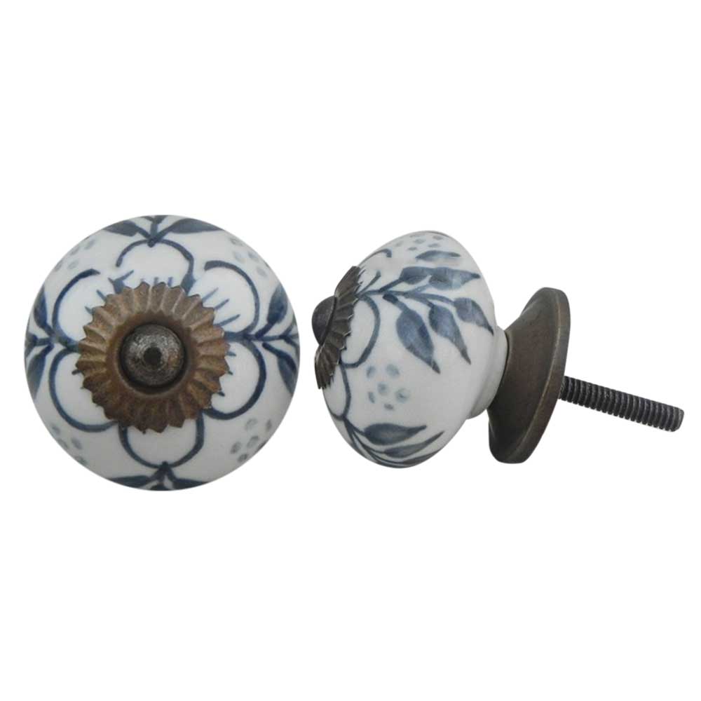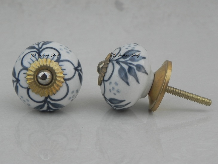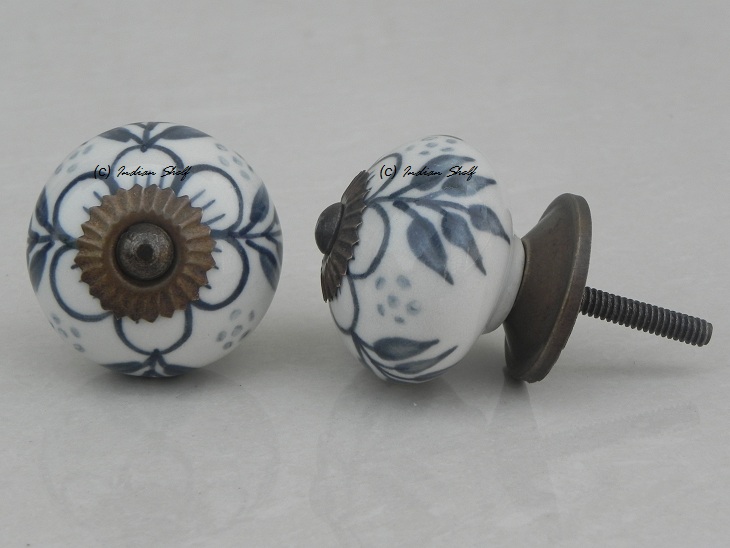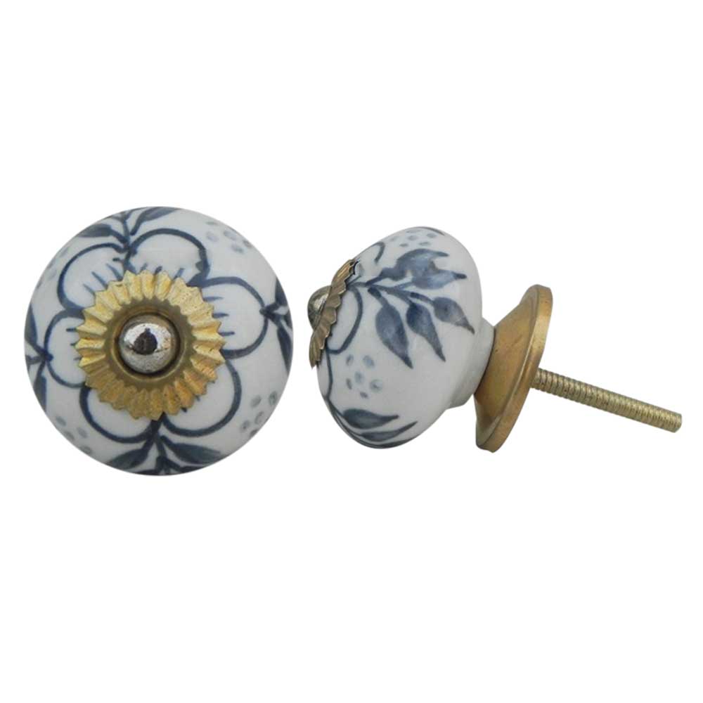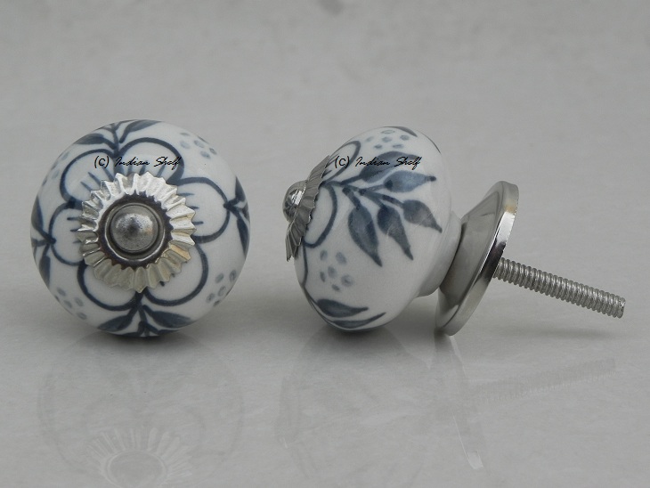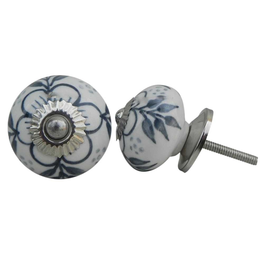 Grey Hawthorn Flower Ceramic Knob. Ideal for kitchen cabinets, kitchen drawers, dining room, bed room, chest drawers, dressing tables, almirah