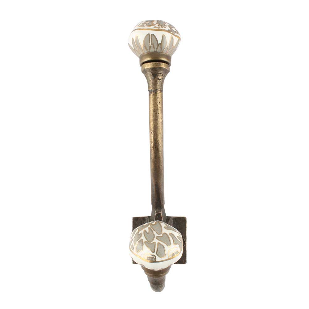 Material: Powder-coated iron with kiln-fired, hand-glazed ceramic Finish: Matte black base with glossy grey ceramic top Installation: Hidden screw mount with included hardware