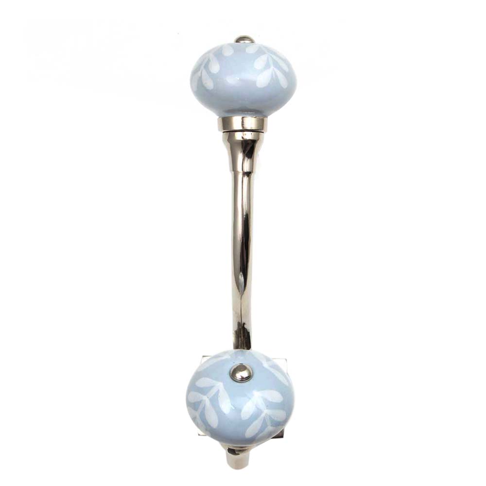 Material: Wrought iron base with hand-etched, glazed ceramic knob Finish: Polished silver iron with glossy grey ceramic floral leaf detailing Installation: Wall-mounted with concealed hardware (screws and anchors included)