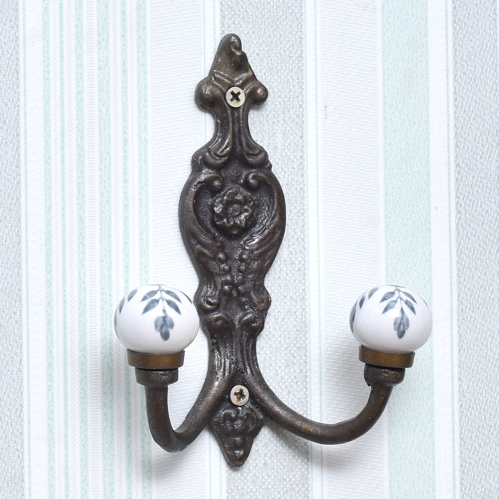 Grey Leaf Ceramic Iron Wall Mounted Hooks