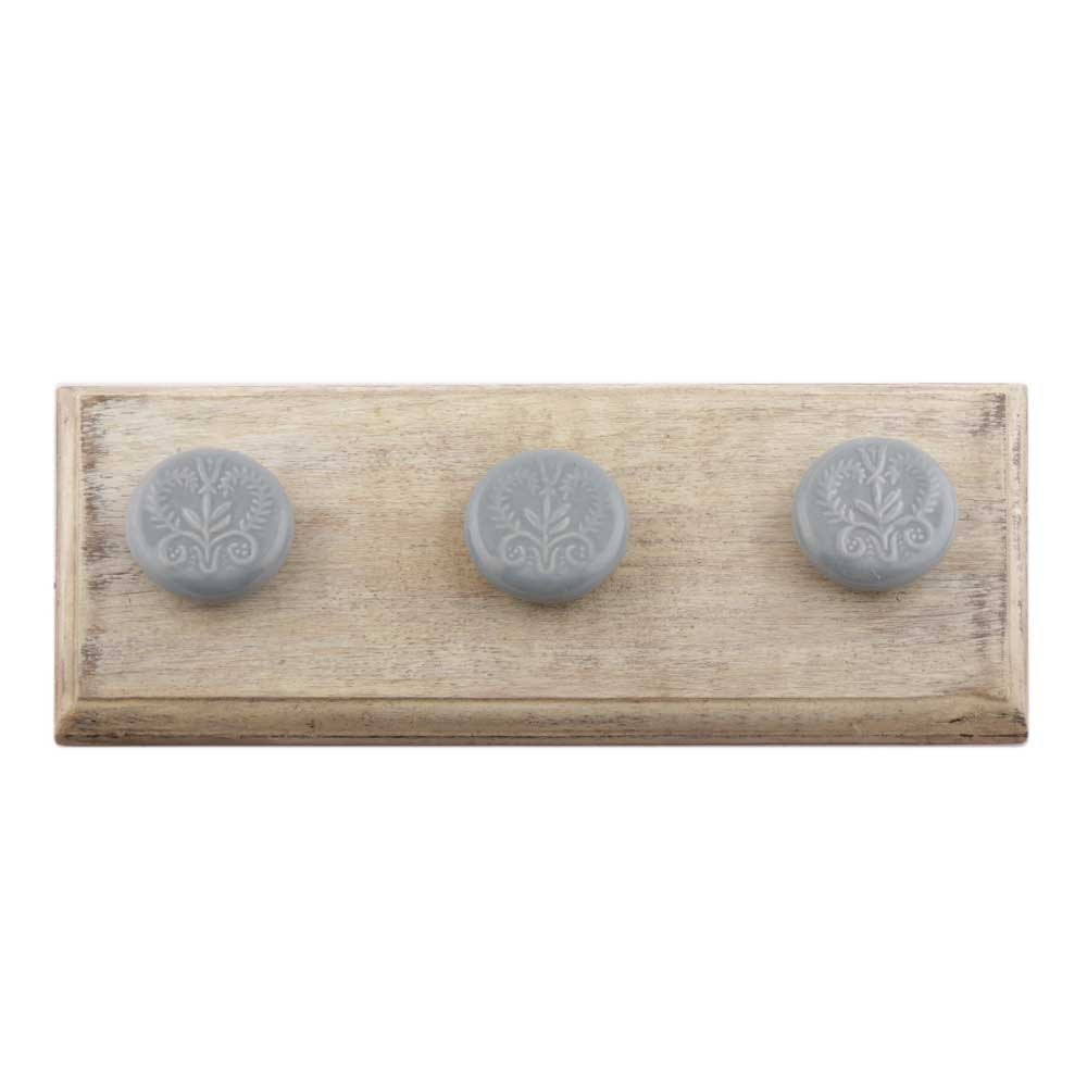 Grey Leaf Ceramic Wooden Hooks. A Perfect Complement to the Soft Tone of the Wood are these White Traditional Hat and Coat Hook Made of Genuine Porcelain and Brass. It can be used to Hang Jewelry, Leashes, Towels, Scarves, Light Weight Sweaters, Caps etc.