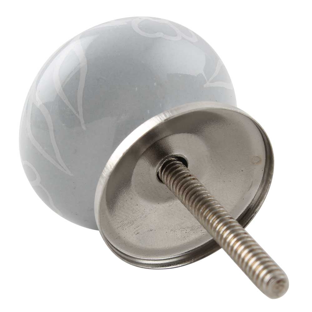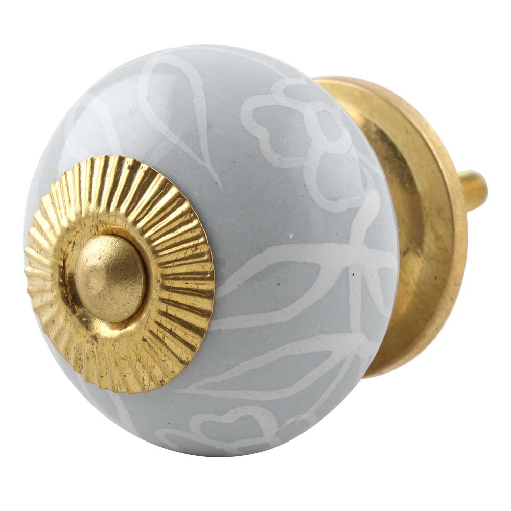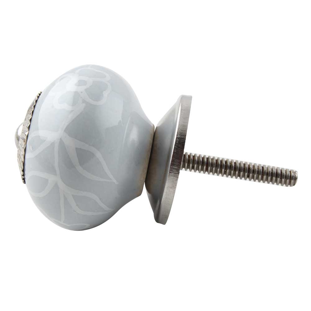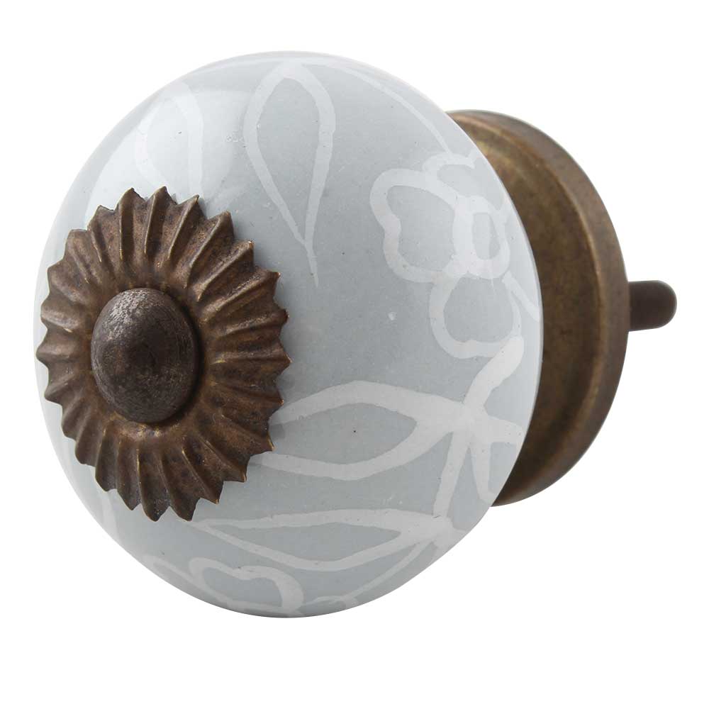 Grey Leaf Floral Ceramic Dresser Knob