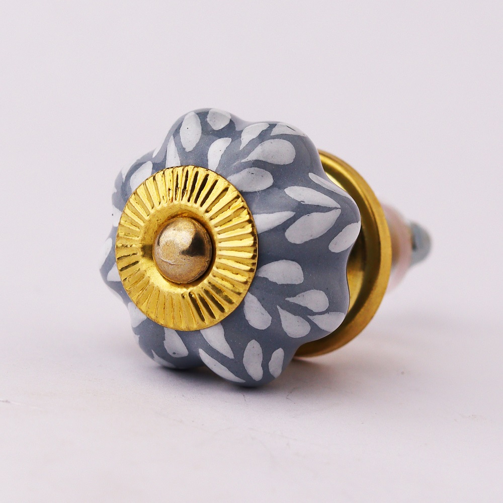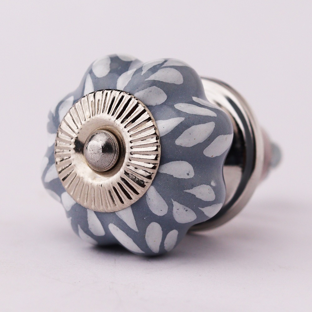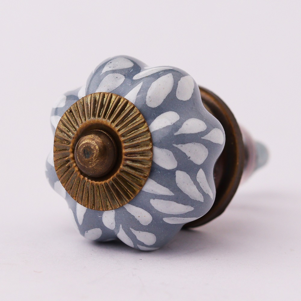 Grey Leaf Medium Ceramic Knob