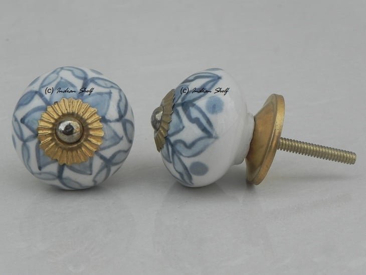 Grey Poinsettia Flower Ceramic Knob. Ideal for kitchen cabinets, kitchen drawers, dining room, bed room, chest drawers, dressing tables, almirah