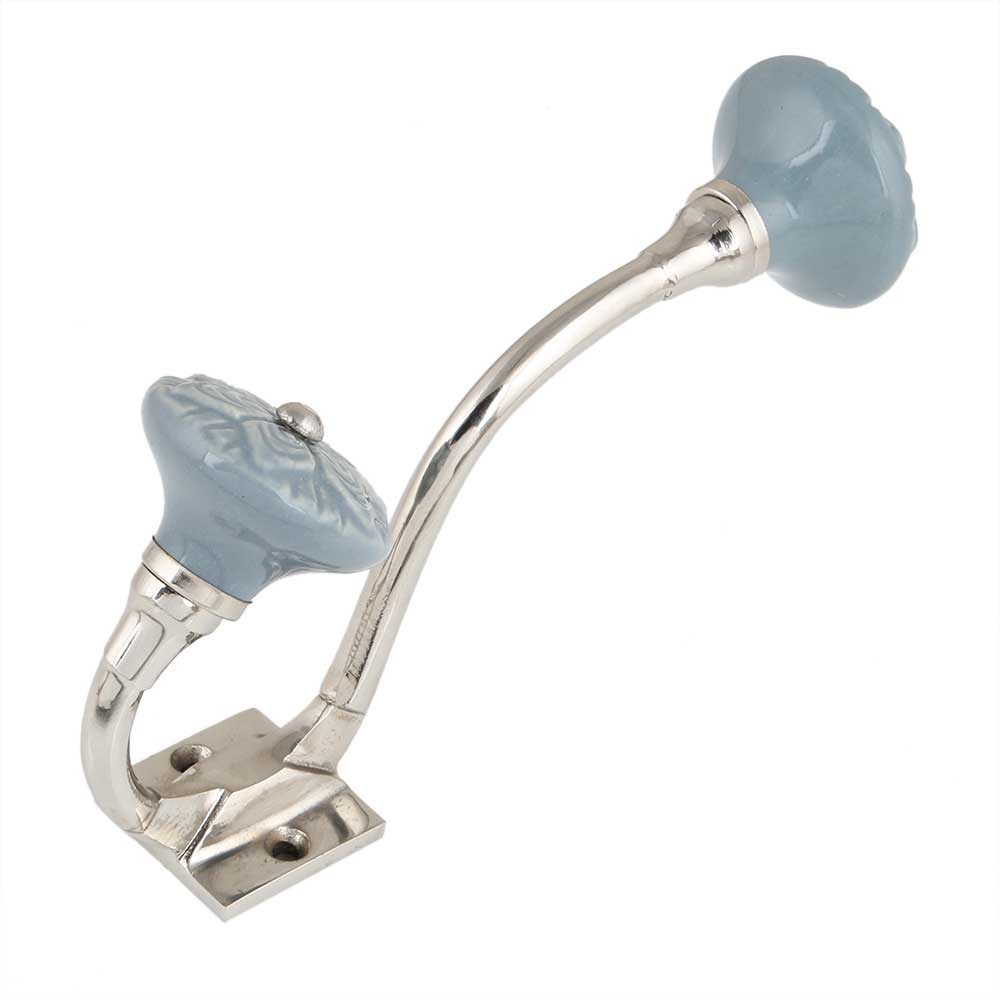 Material: Handcrafted Ceramic & Silver-Finished Wrought Iron Hook Finish: Glazed Grey Ceramic with Smooth Silver Iron Installation: Wall-mounted with concealed screw system (hardware included)