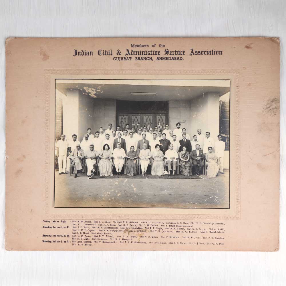 Capture a piece of history with this striking vintage paper photograph. This black and white group photo depicts the members of the Indian Civil & Administrative Service Association, Gujarat Branch, Ahmedabad. This vintage photograph offers a fascinating glimpse into India's past. The smartly dressed gentlemen posed formally for this group portrait, which likely dates back to the early or mid 20th century. As members of the Indian Civil Service, these men helped administer British rule in India. For history buffs, this photograph is a treasure. Display it proudly as décor in your home or office to showcase a piece of the past. An ideal gift for collectors of vintage Indian memorabilia.